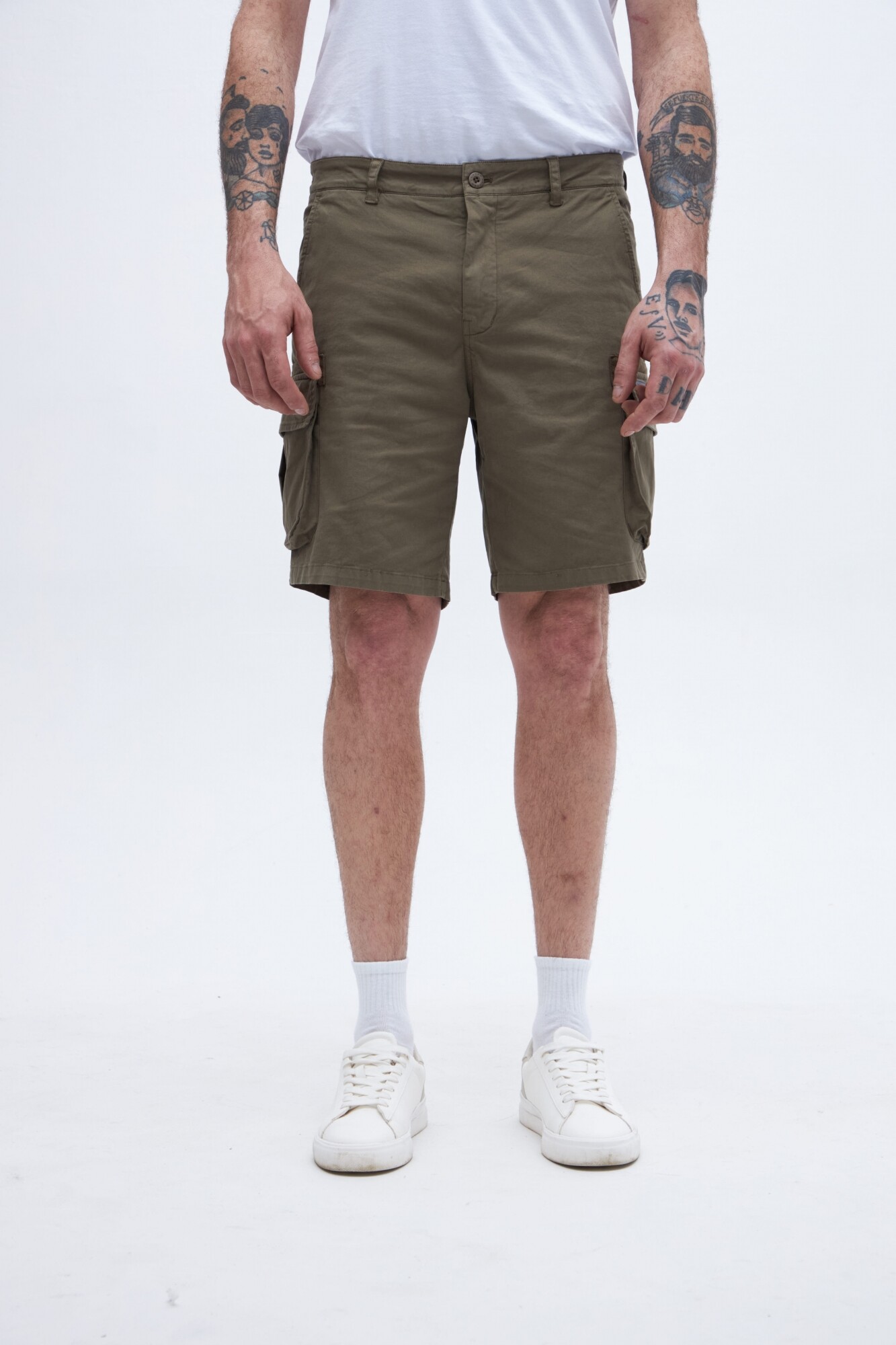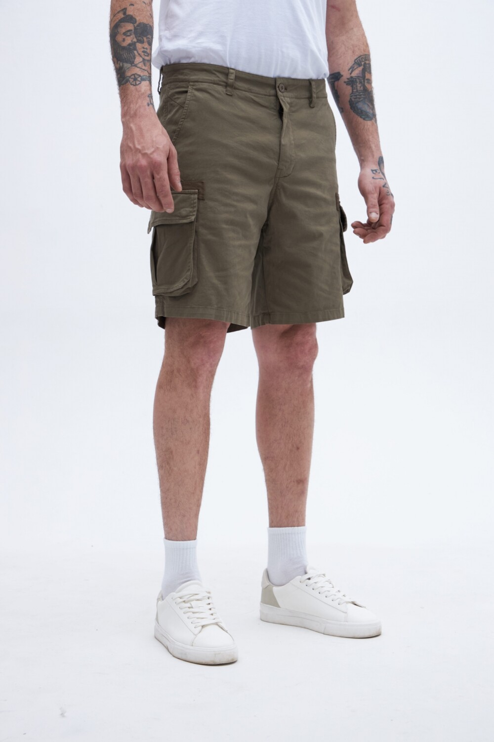 Bermuda cargo con bolsillos laterales y bolsillos cargo con solapa y botones.