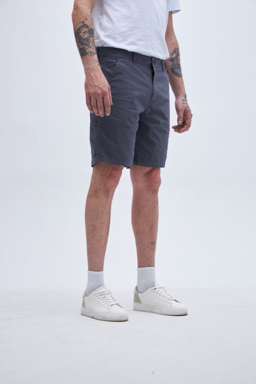 Bermuda carpintera con bolsillos laterales y detalle en trasera.