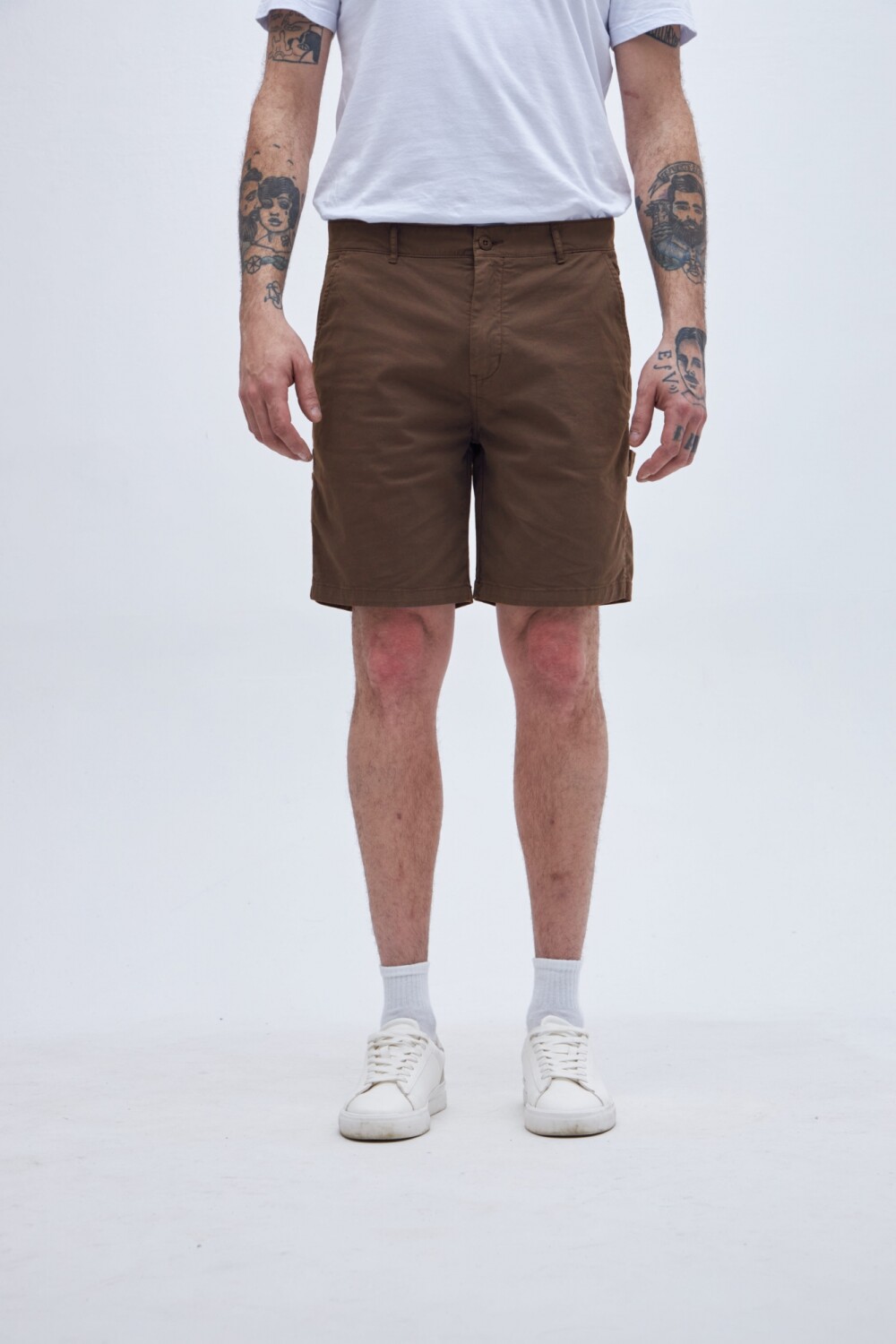 Bermuda carpintera con bolsillos laterales y detalle en trasera.