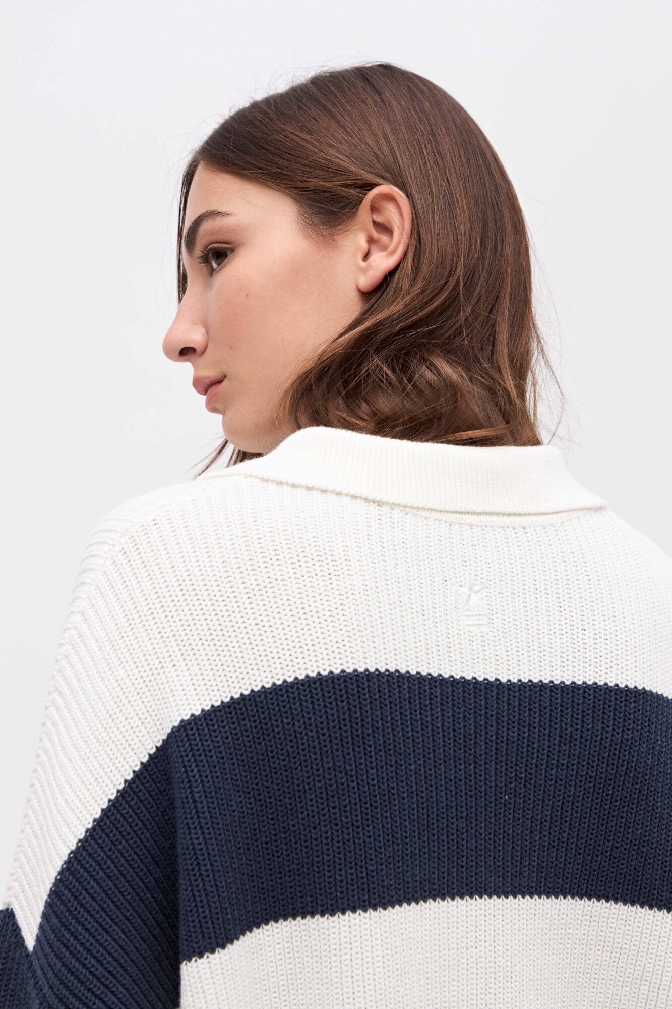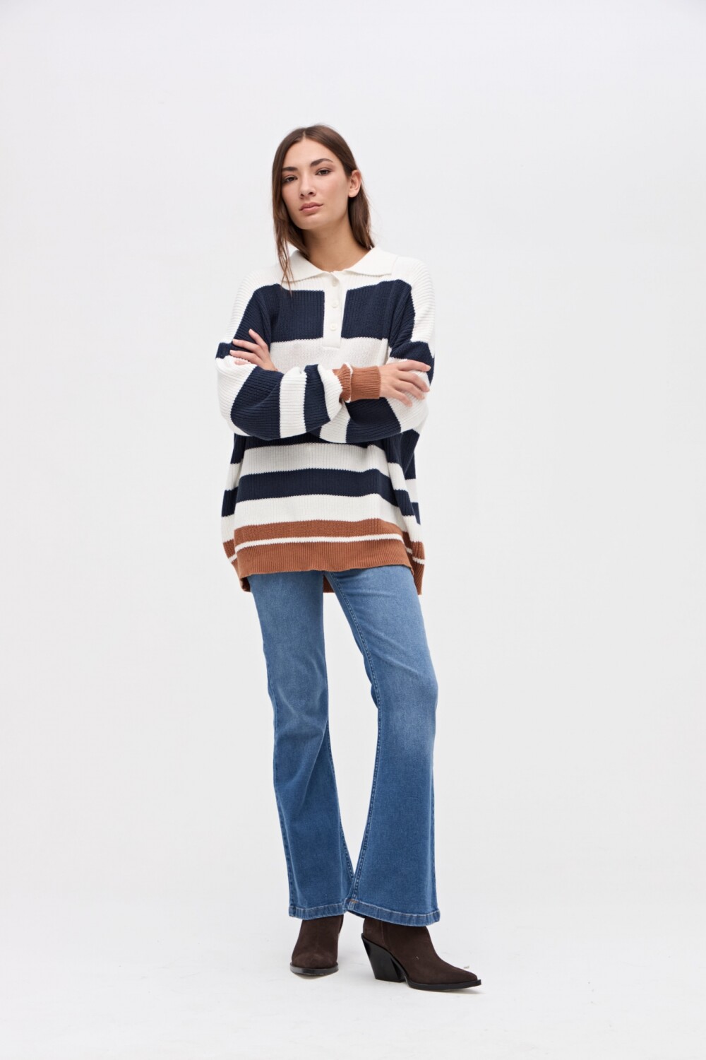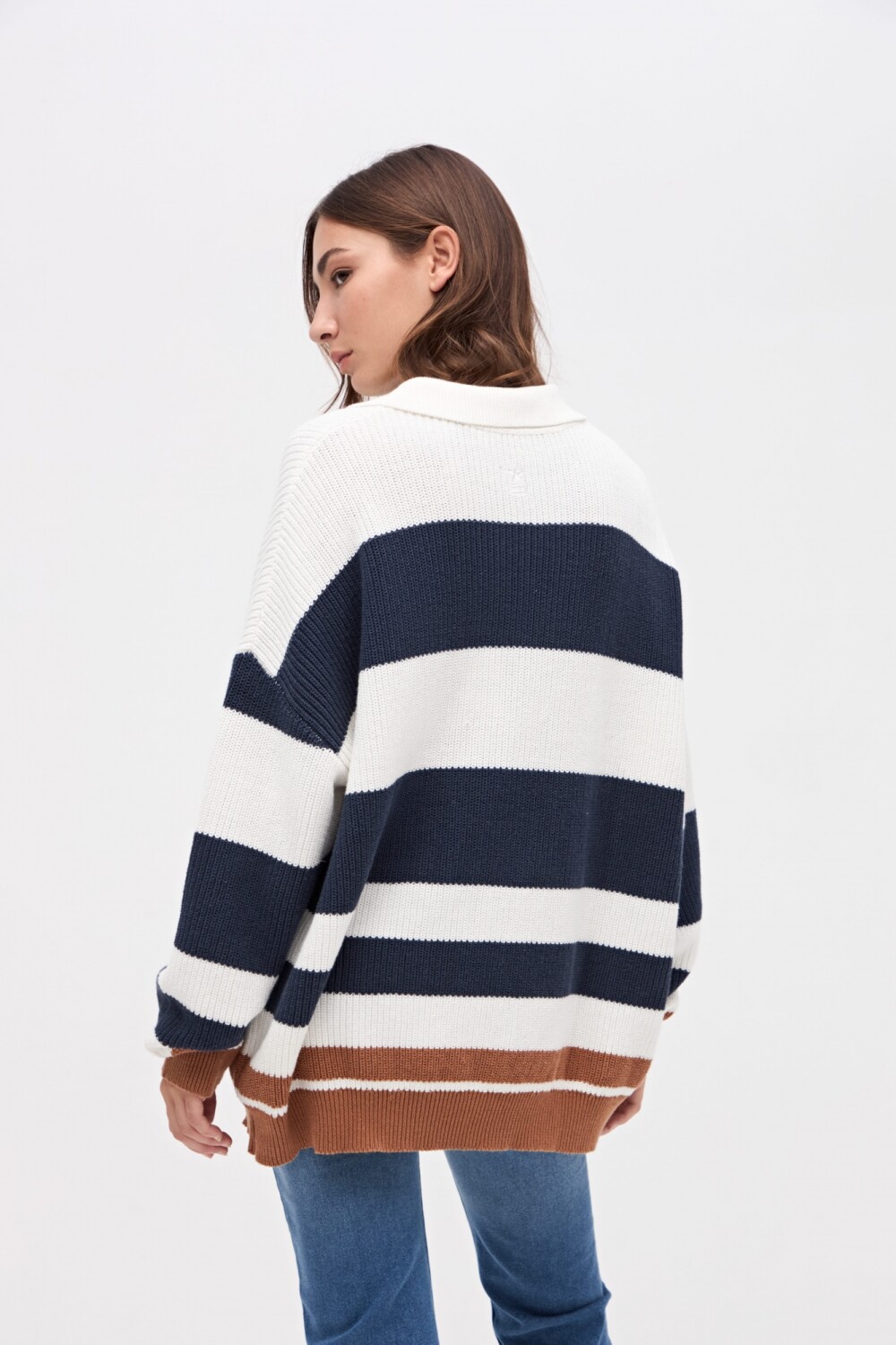$ 2.882Polo tejida con cartera de botones y cuellito. Diseño de rayas en bloque. Bordado de marca en espalda. Calce holgado.