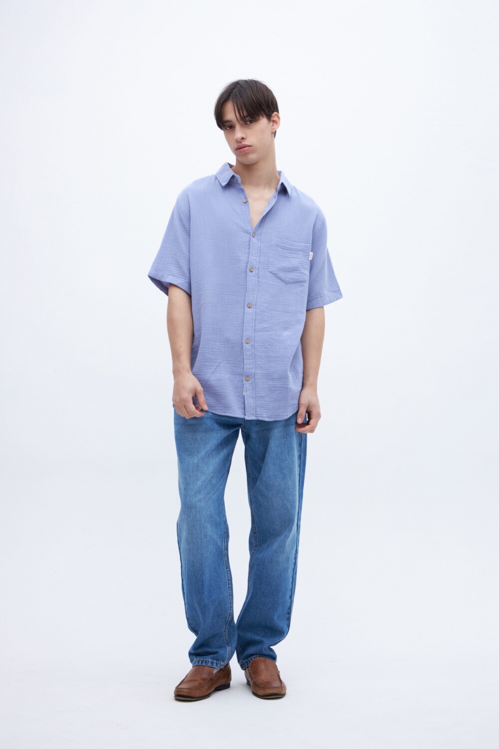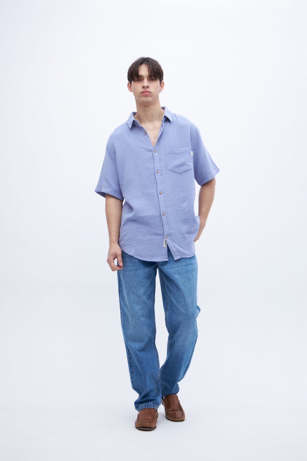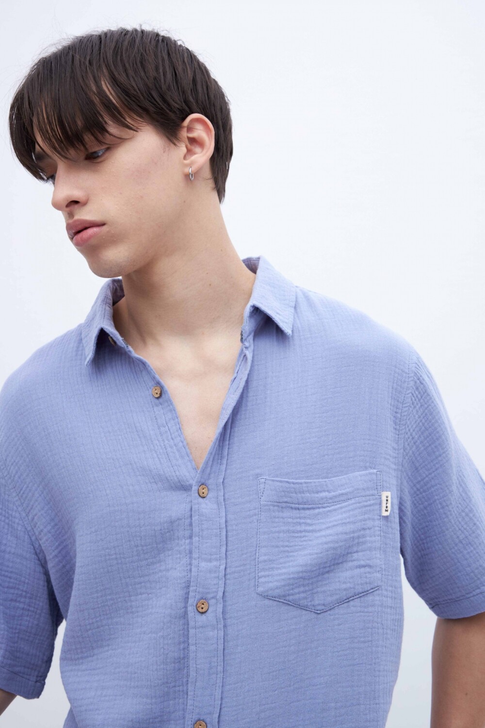 Camisa regular fit, con manga corta. Cuello solapa clásico y bolsillo en pecho. Botones personalizados.