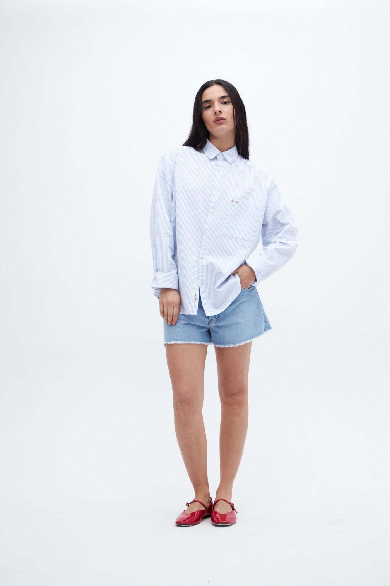 Camisa confeccionada en tela de algodón. Cuello solapa clásico y bolsillo cuadrado en pecho. Botones personalizados. Calce relaxed.