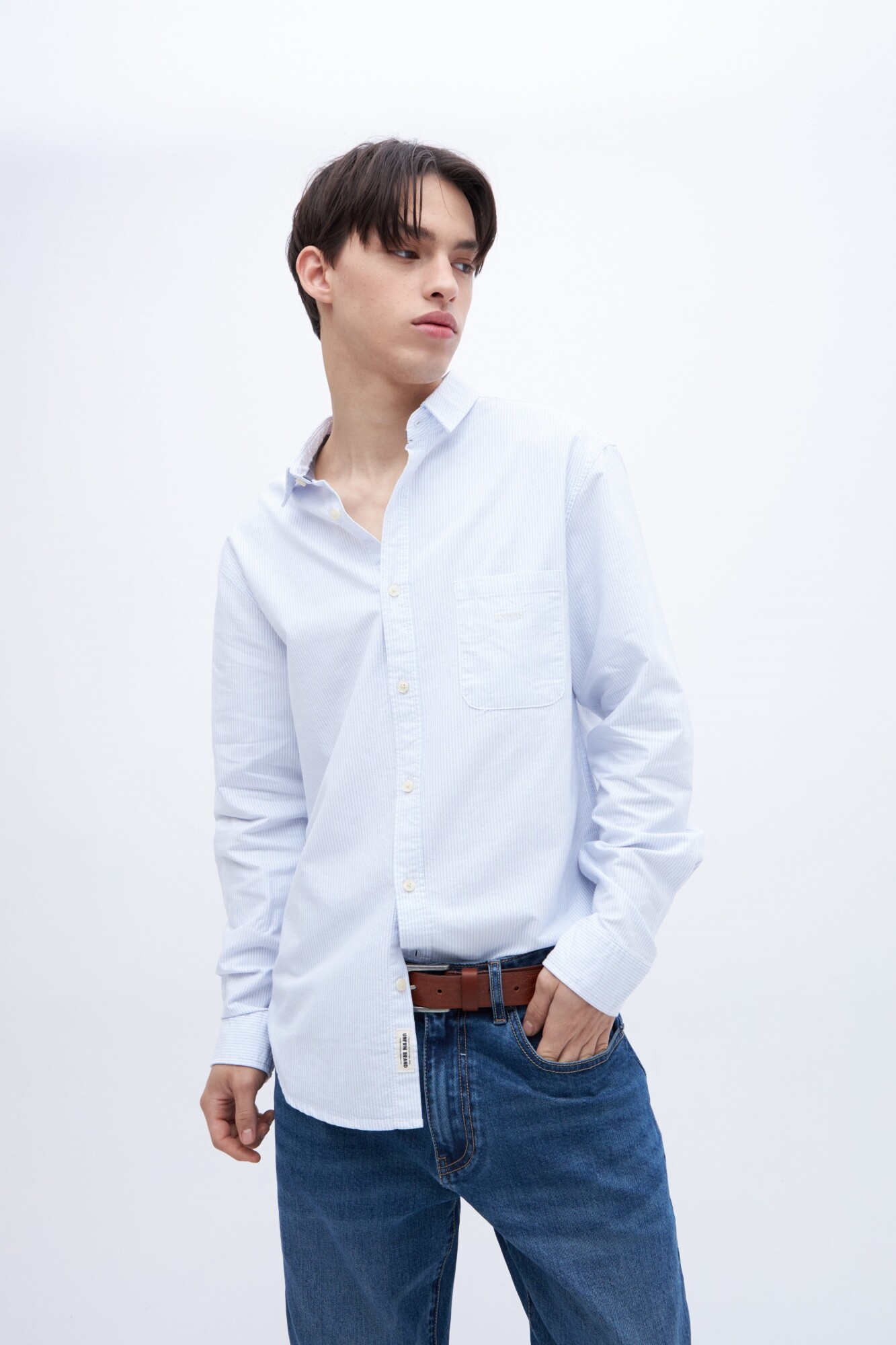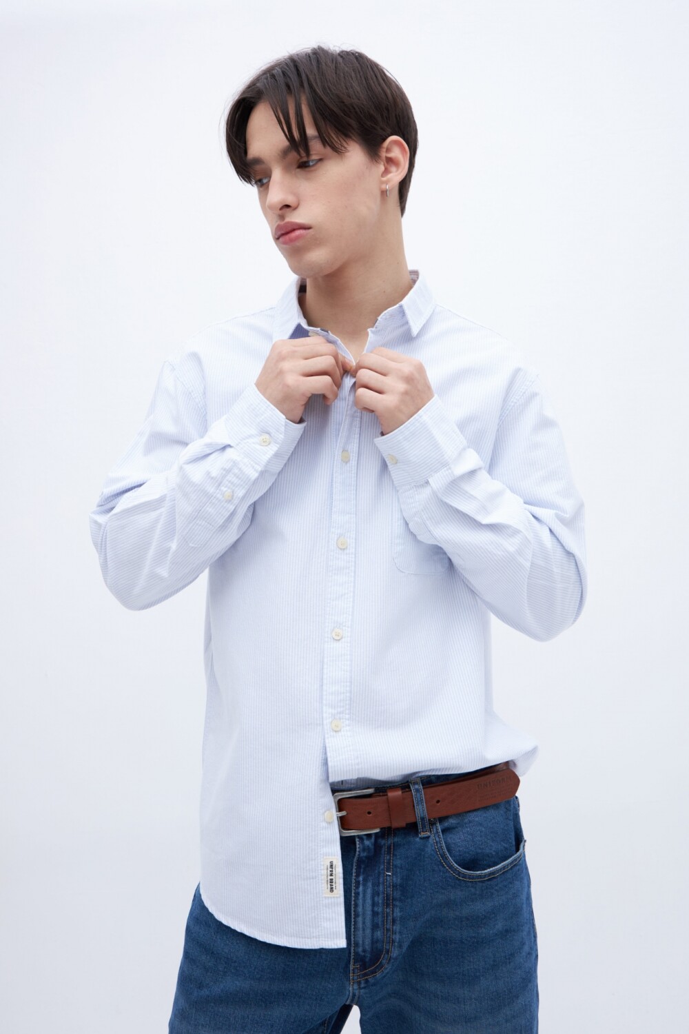 Camisa regular fit confeccionada en tela de algodón. Cuello solapa clásico y bolsillo en pecho. Botones personalizados.