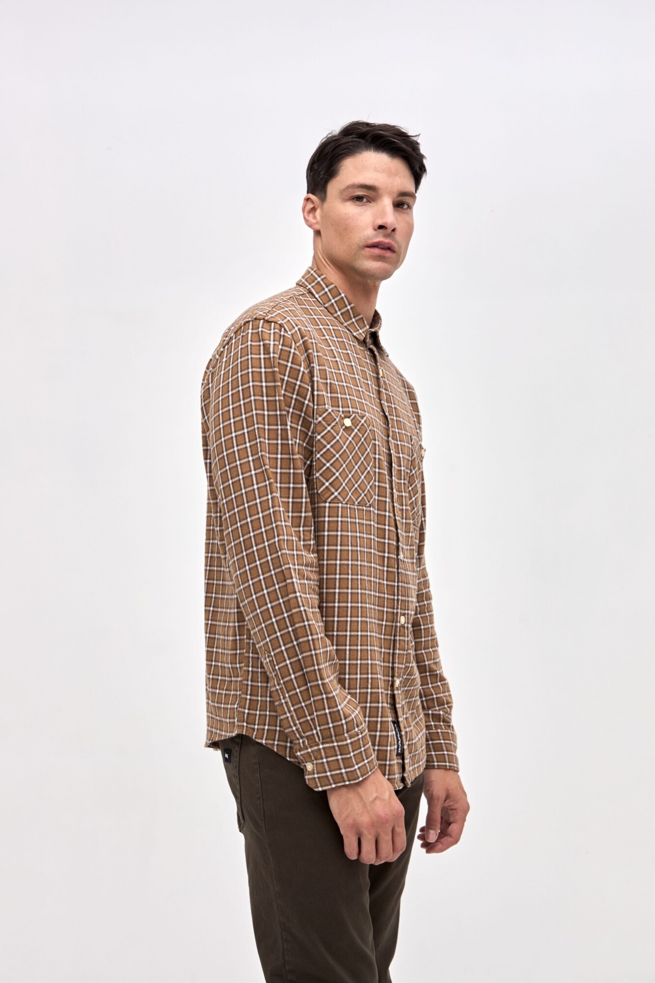 $ 2.287Camisa regular fit confeccionada en tela de algodón. Cuello solapa clásico y dos bolsillos en pecho. Botones personalizados.
