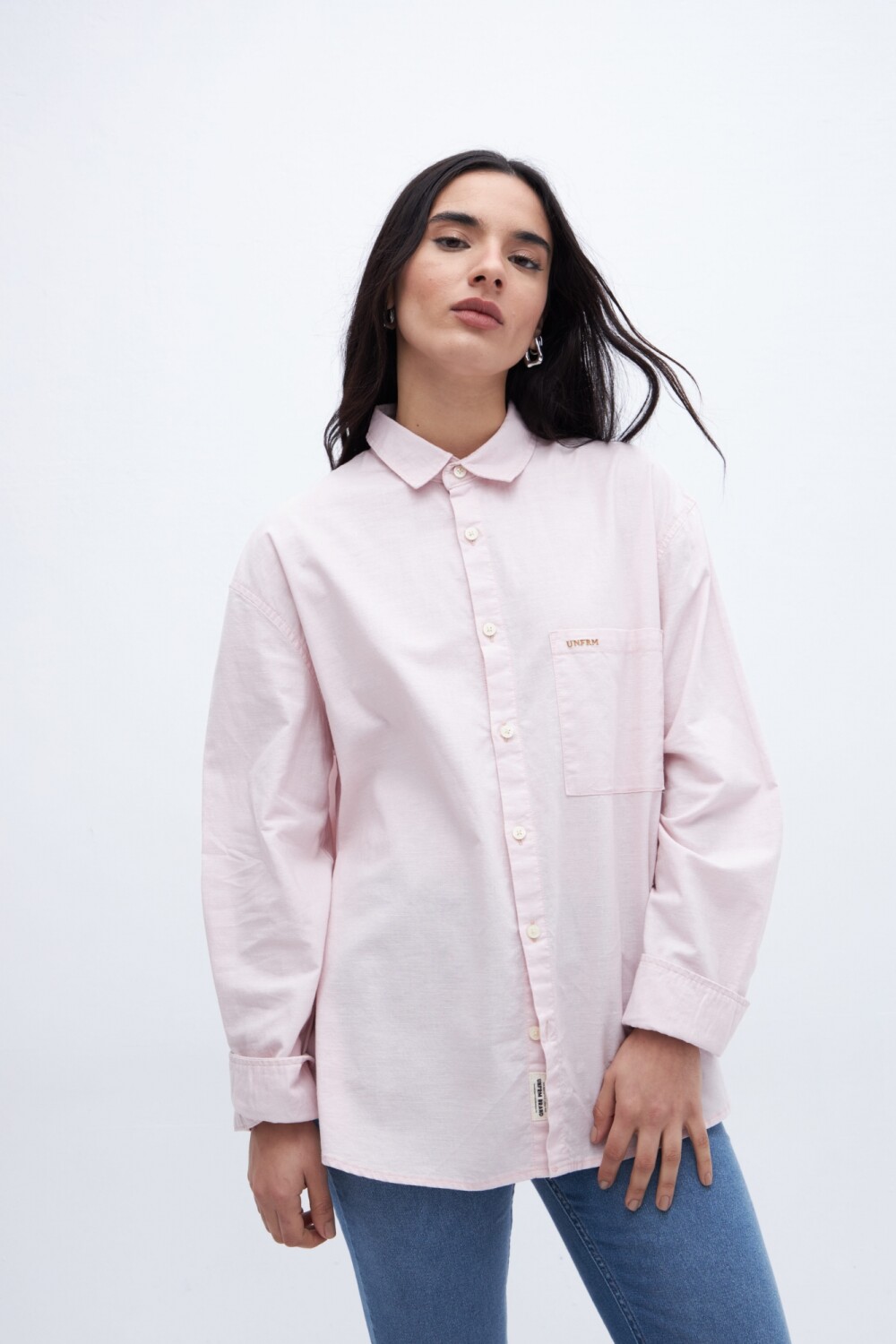 Camisa confeccionada en tela de algodón. Cuello solapa clásico y bolsillo cuadrado en pecho. Botones personalizados. Calce relaxed.