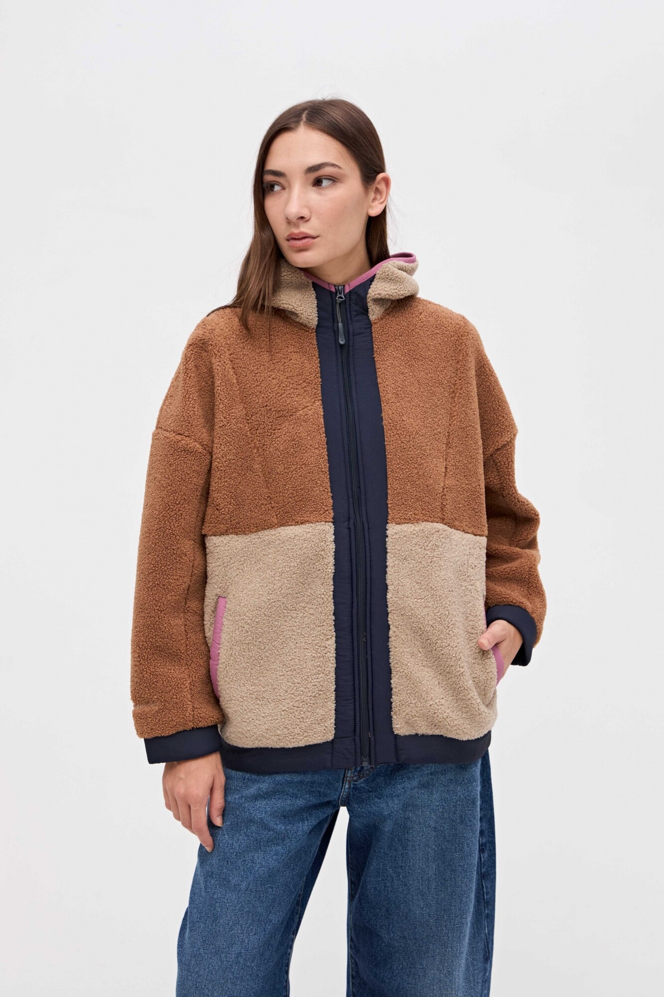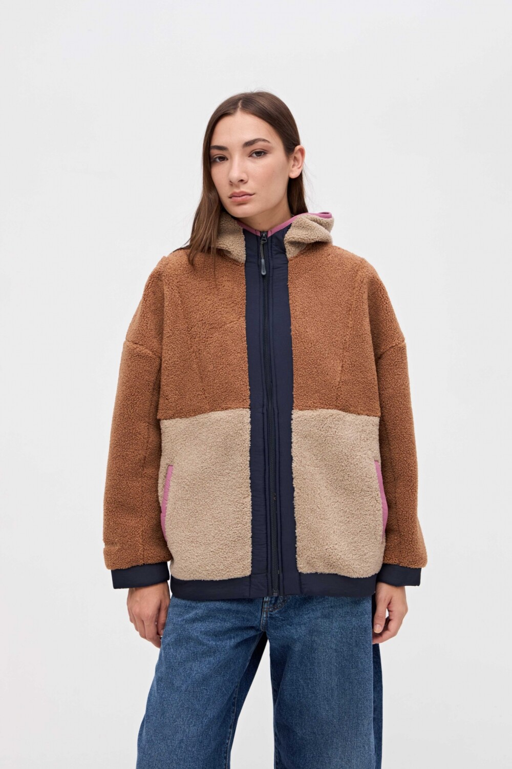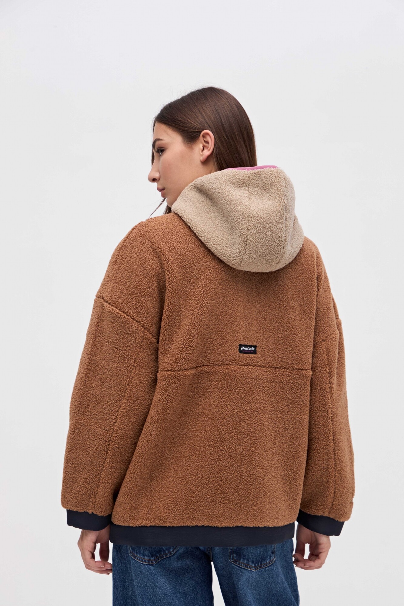 $ 2.542Campera con cierre en sherpa doble faz. Capucha forrada en nylon contratono de alta calidad. Cartera central con combinación de nylon, cierre plástico. Bolsillos laterales en nylon contratono. Bordado en manga. Calce relaxed.