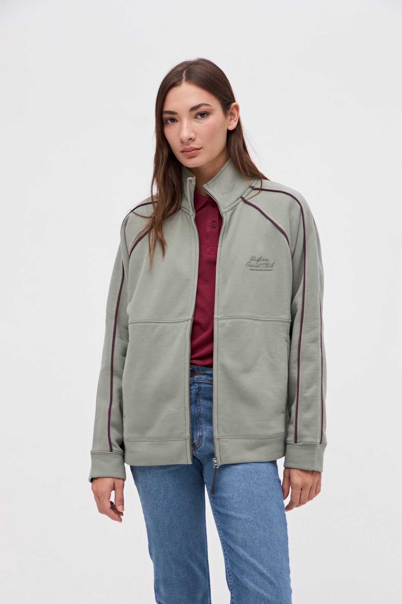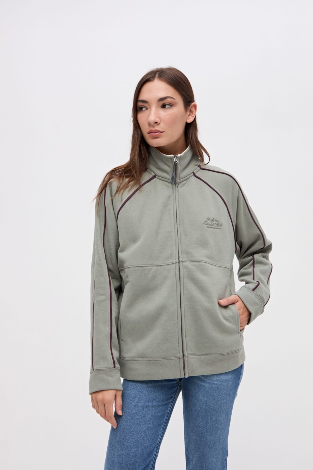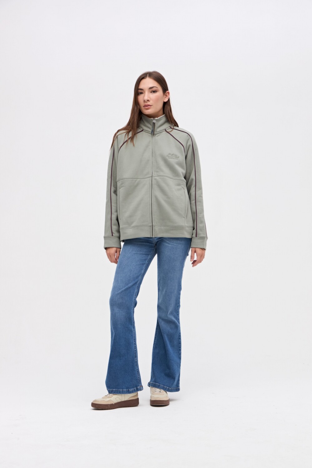 $ 2.117Camperita con cierre metálico en felpa con friza. Detalles de vivos a contratono. Corte en cuerpo con bolsillos laterales. Bordado en pecho. Calce relaxed.