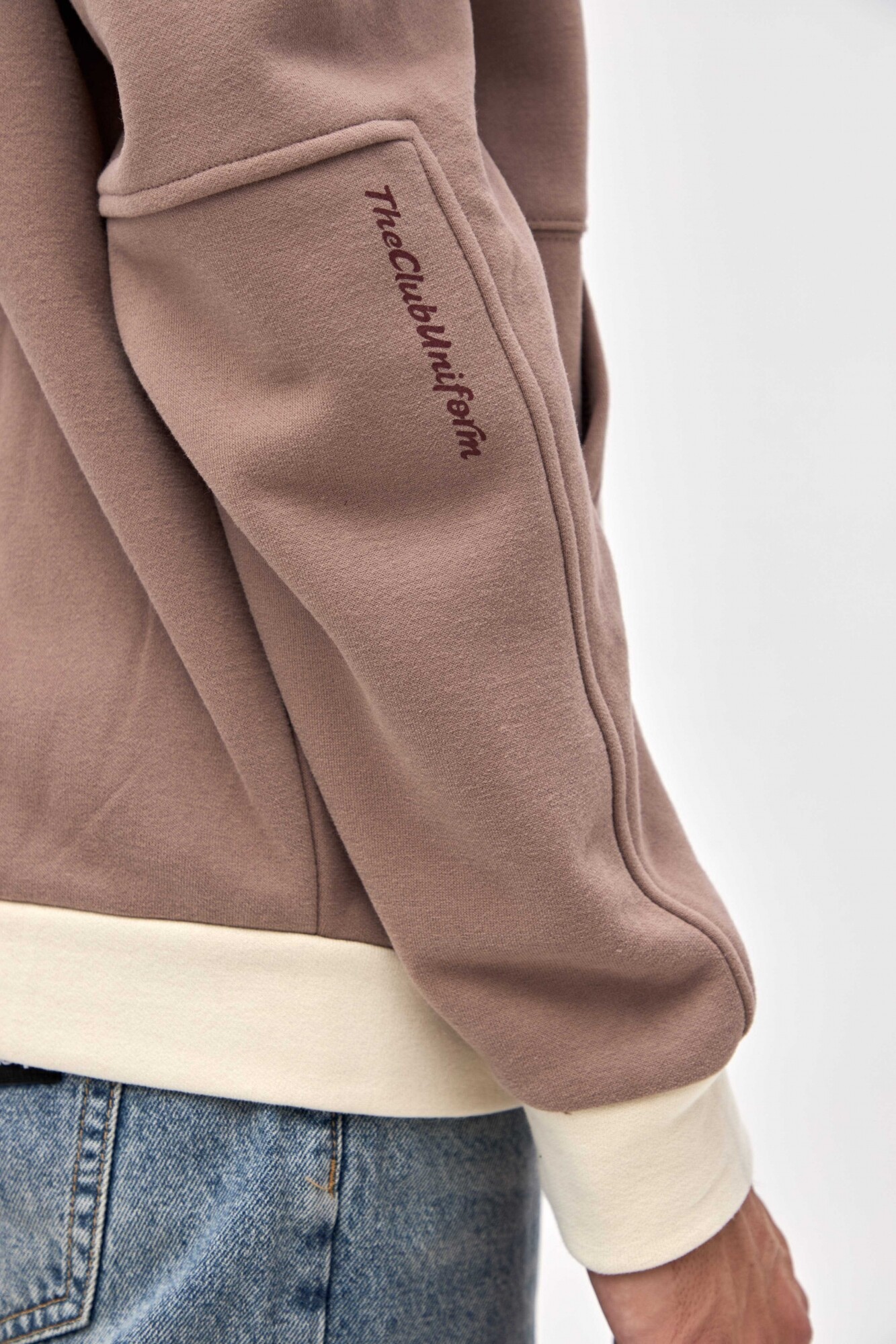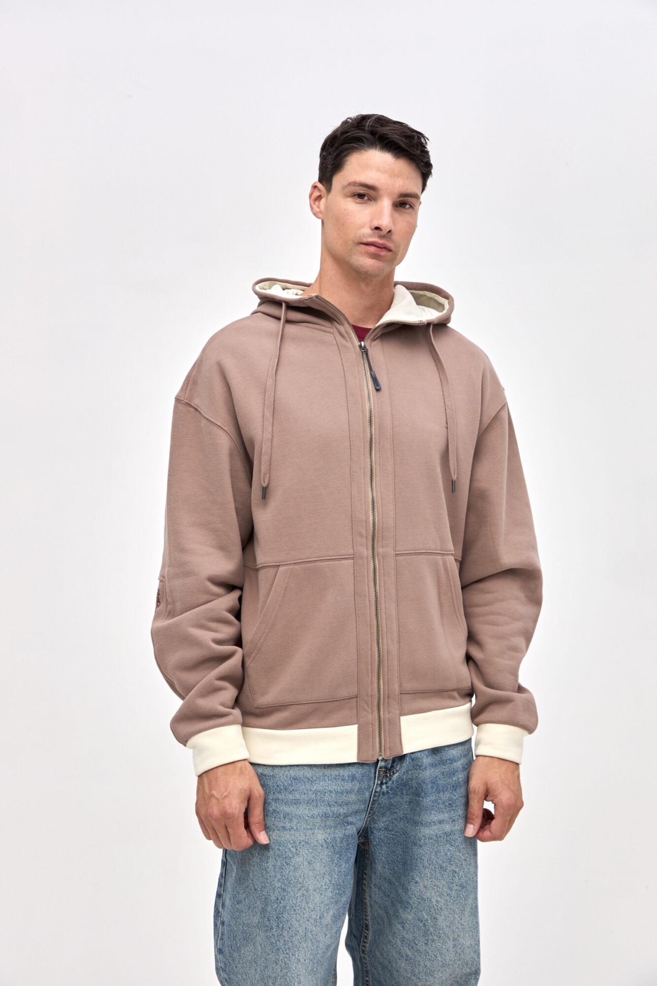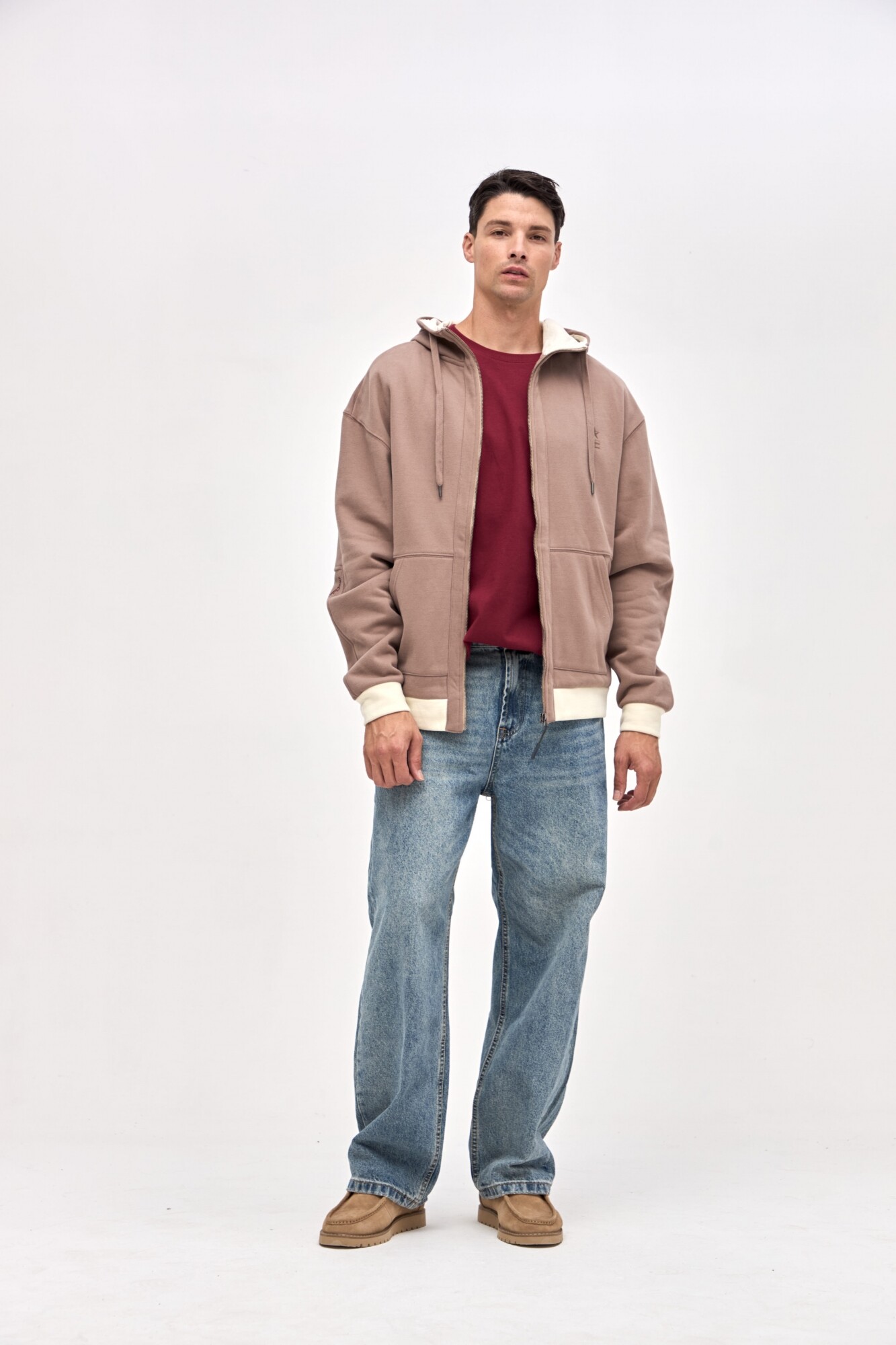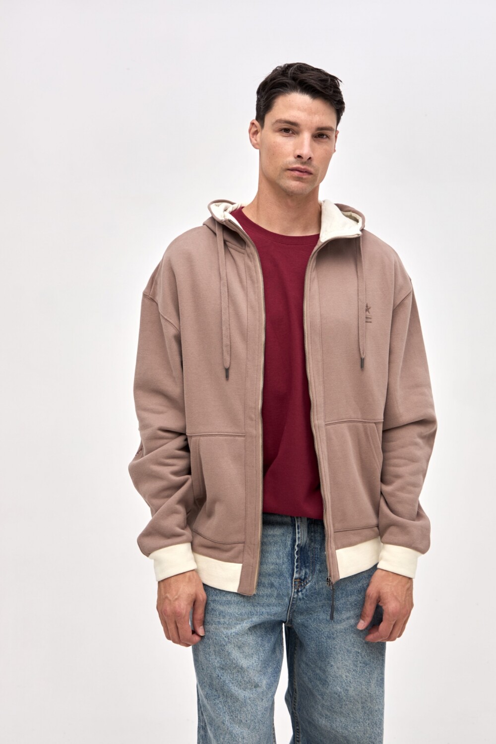 $ 2.117Canguro con cierre en felpa con friza. Detalle de capucha con cuello alto y cortes en cartera central. Cierre metálico. Corte en cuerpo y bolsillo canguro. Corte tipo codera en mangas con bordado de marca. Bordado de marca en pecho. Calce relaxed.