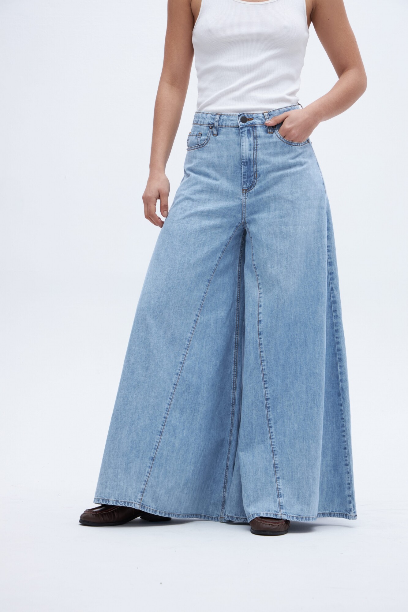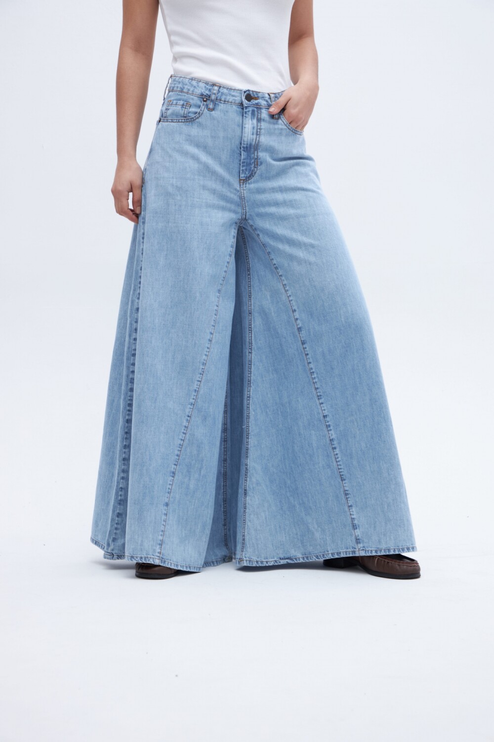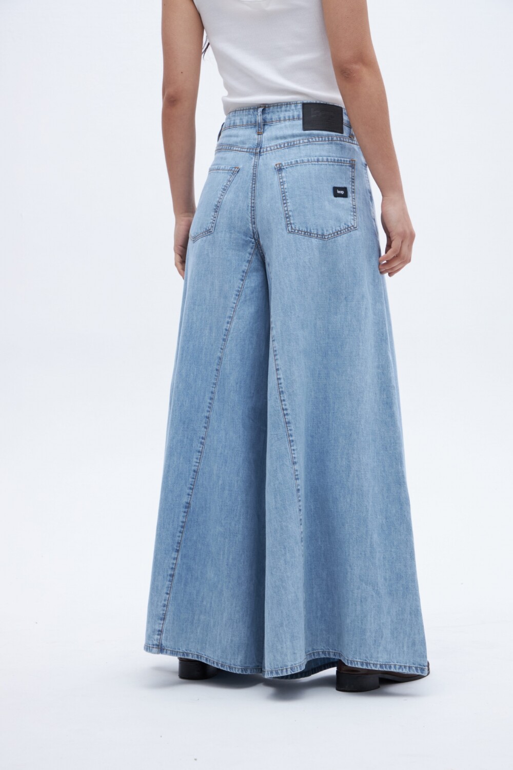 $ 2.797Jean holgado desde la cadera hasta el bajo. Estilo relajado y suelto con cadera levemente ajustada y amplitud a partir del muslo. Este modelo se caracteriza por su pierna super ancha. Corte en pierna.