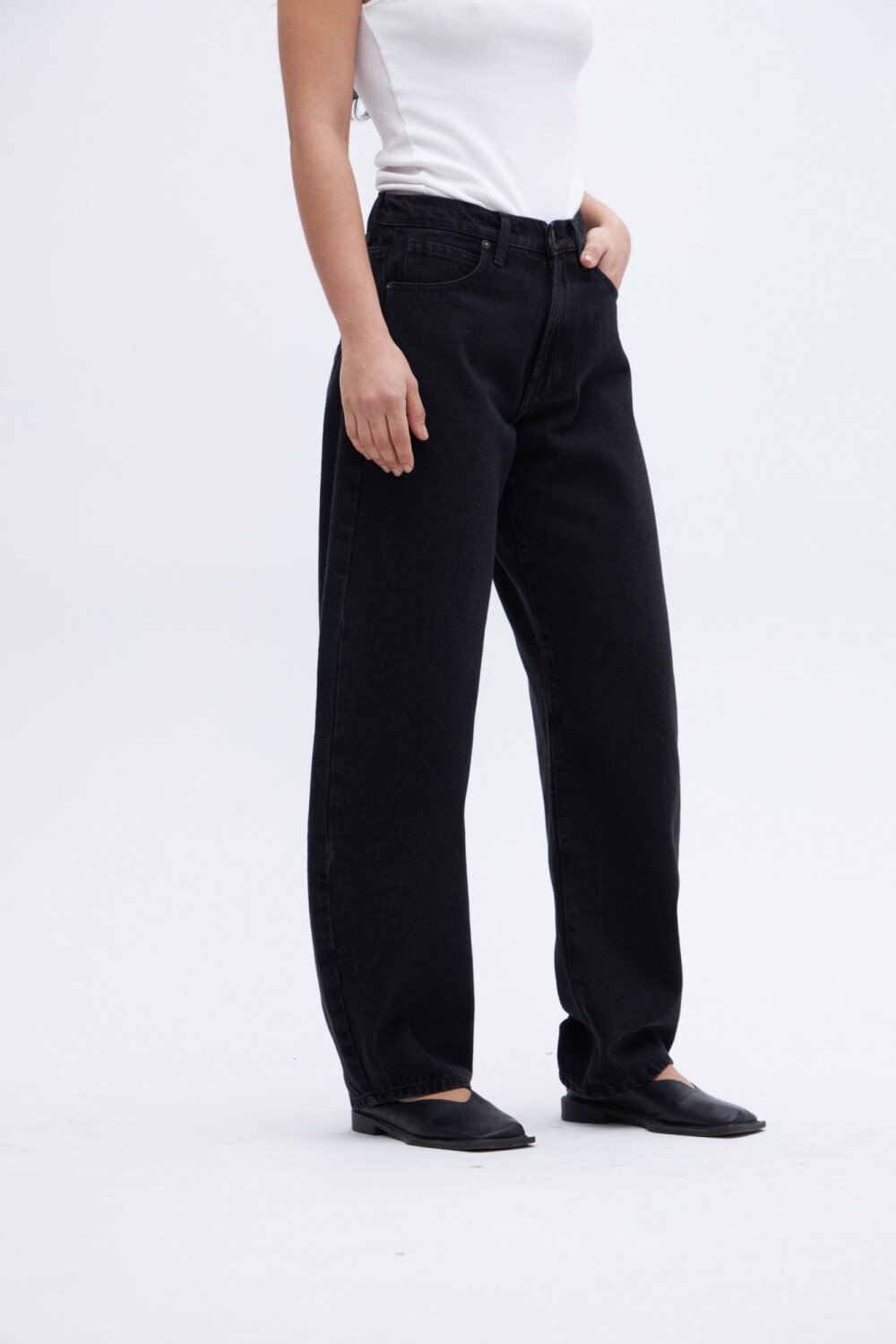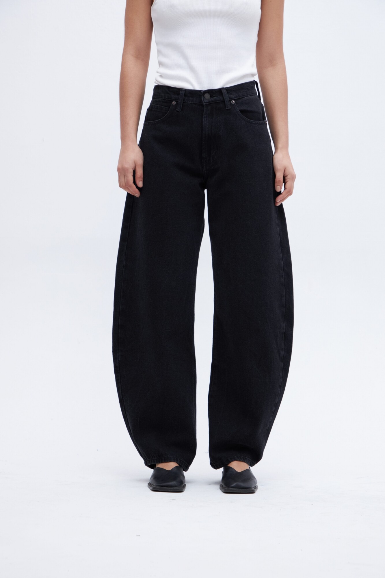 $ 2.303Jean tiro alto con cintura ajustada y piernas holgadas desde cadera hasta la rodilla, estrechandose hacia el bajo. Silueta tipo globo, calce baloon.