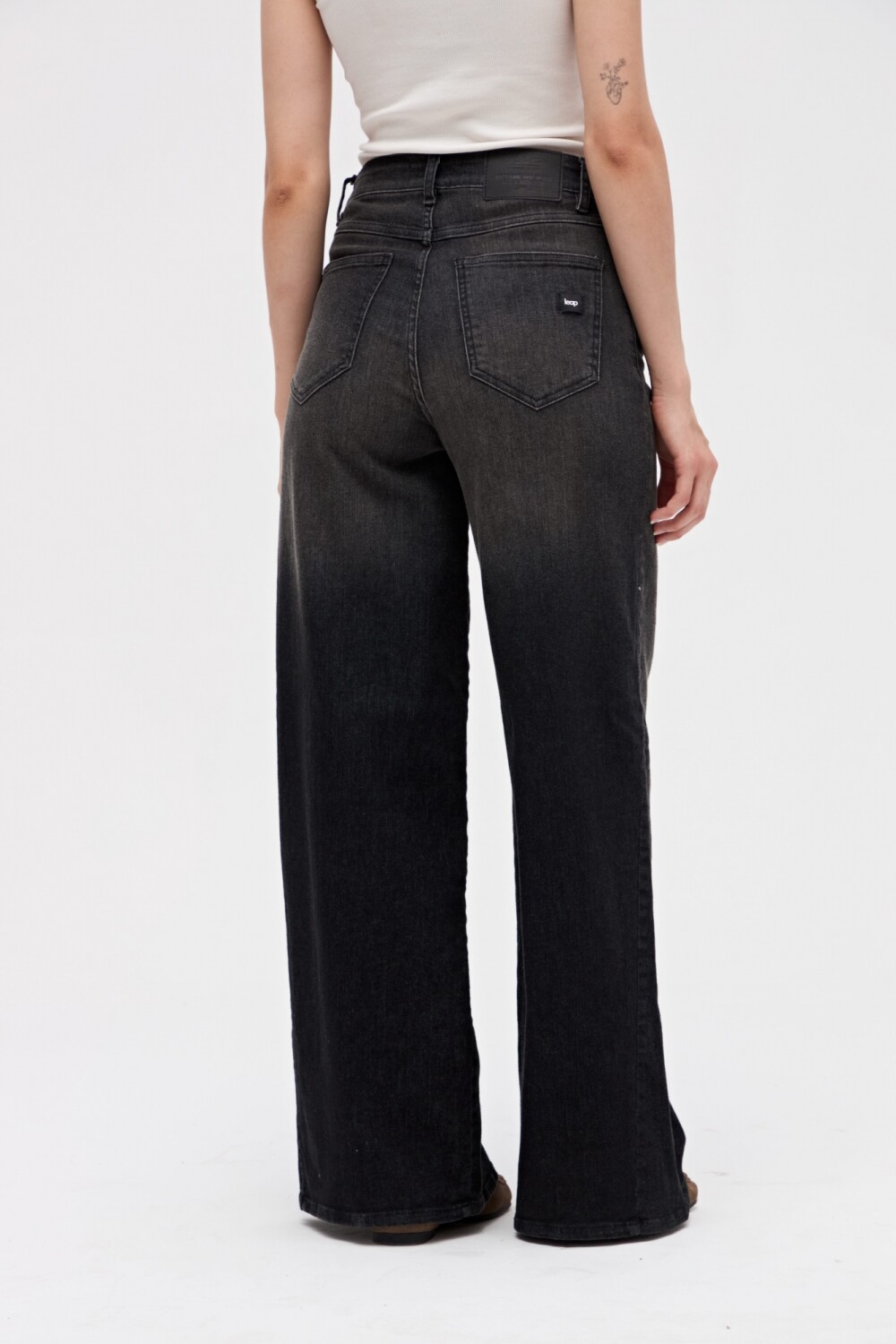 $ 2.542Jean con corte ajustado en cintura y caderas, con amplitud en piernas pero con un estilo más elegante y refinado. De aspecto más estructurado y sofisticado. Detalle de corte diagonal en pierna.