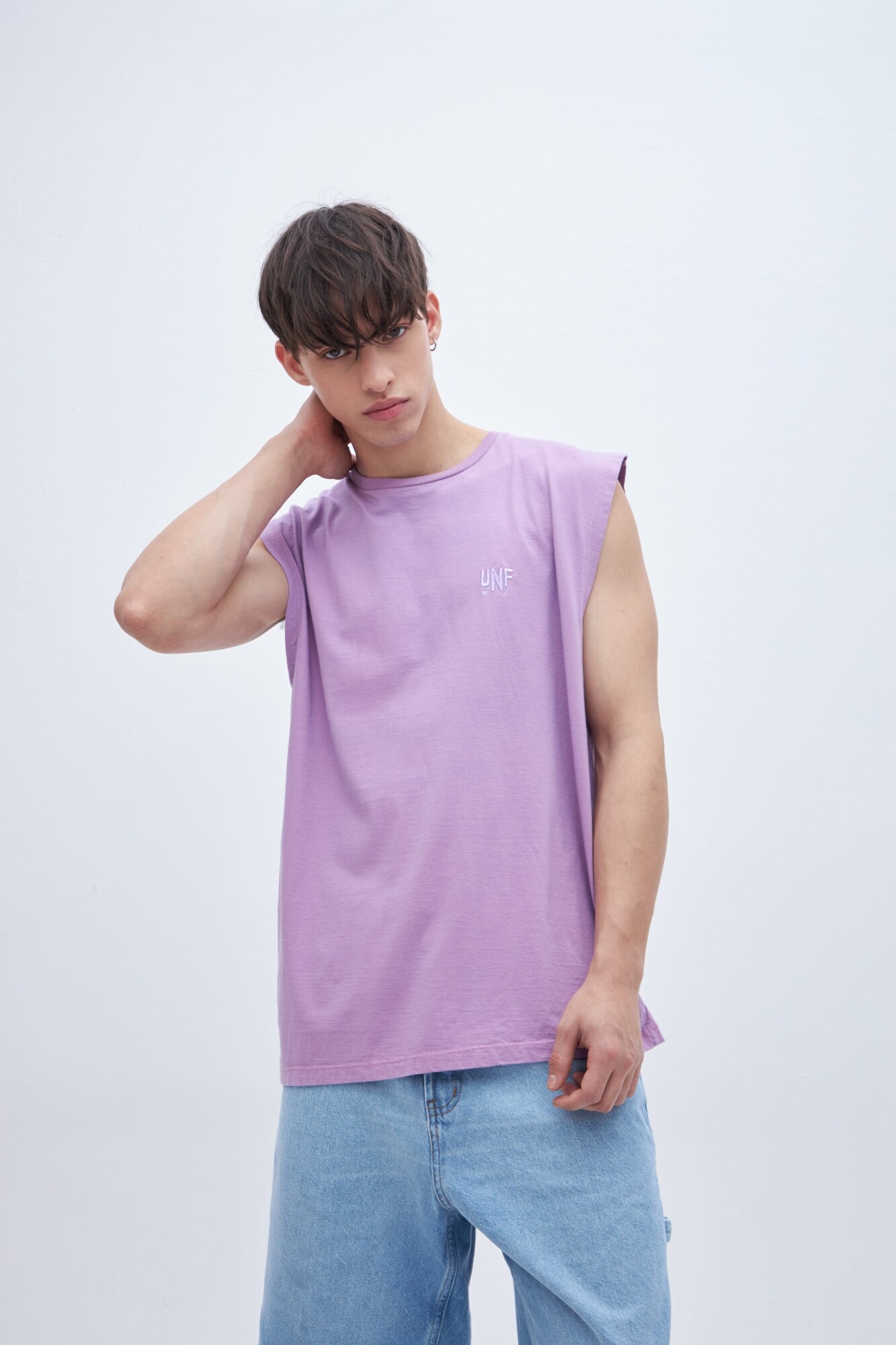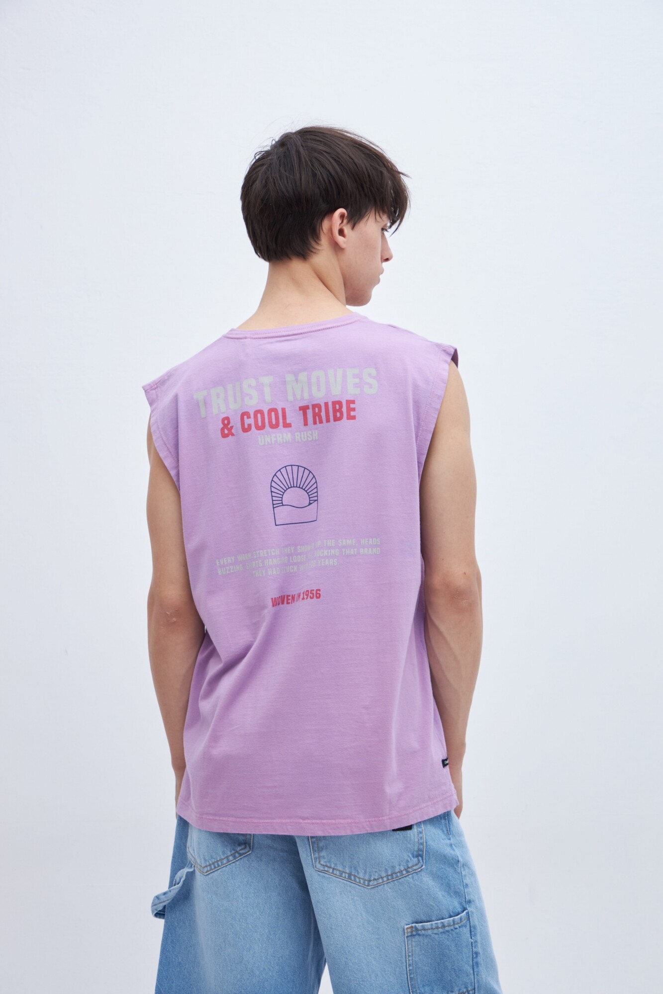 $ 927Musculosa con arte chico en pecho y texto en espalda. Calce oversize.