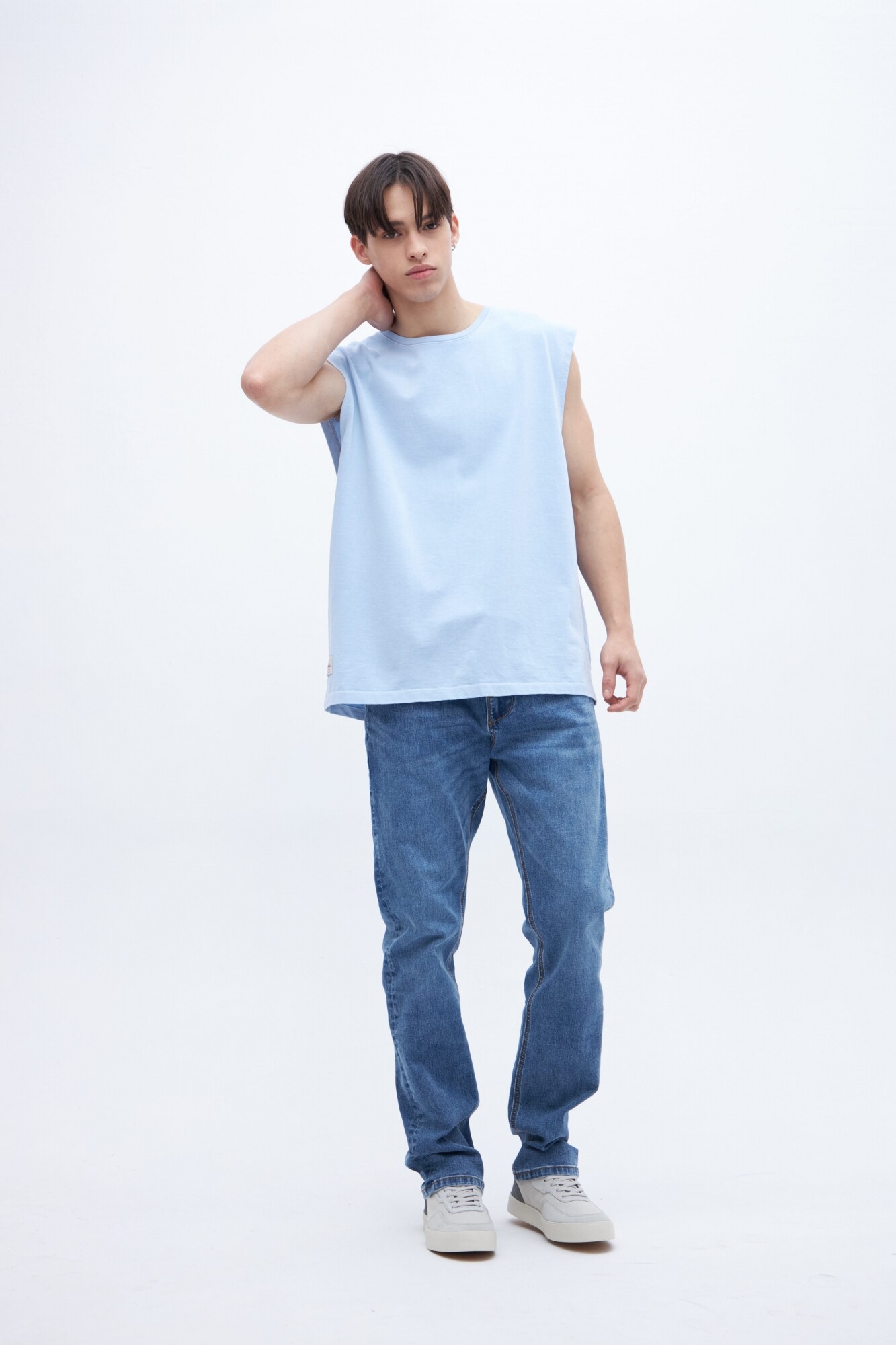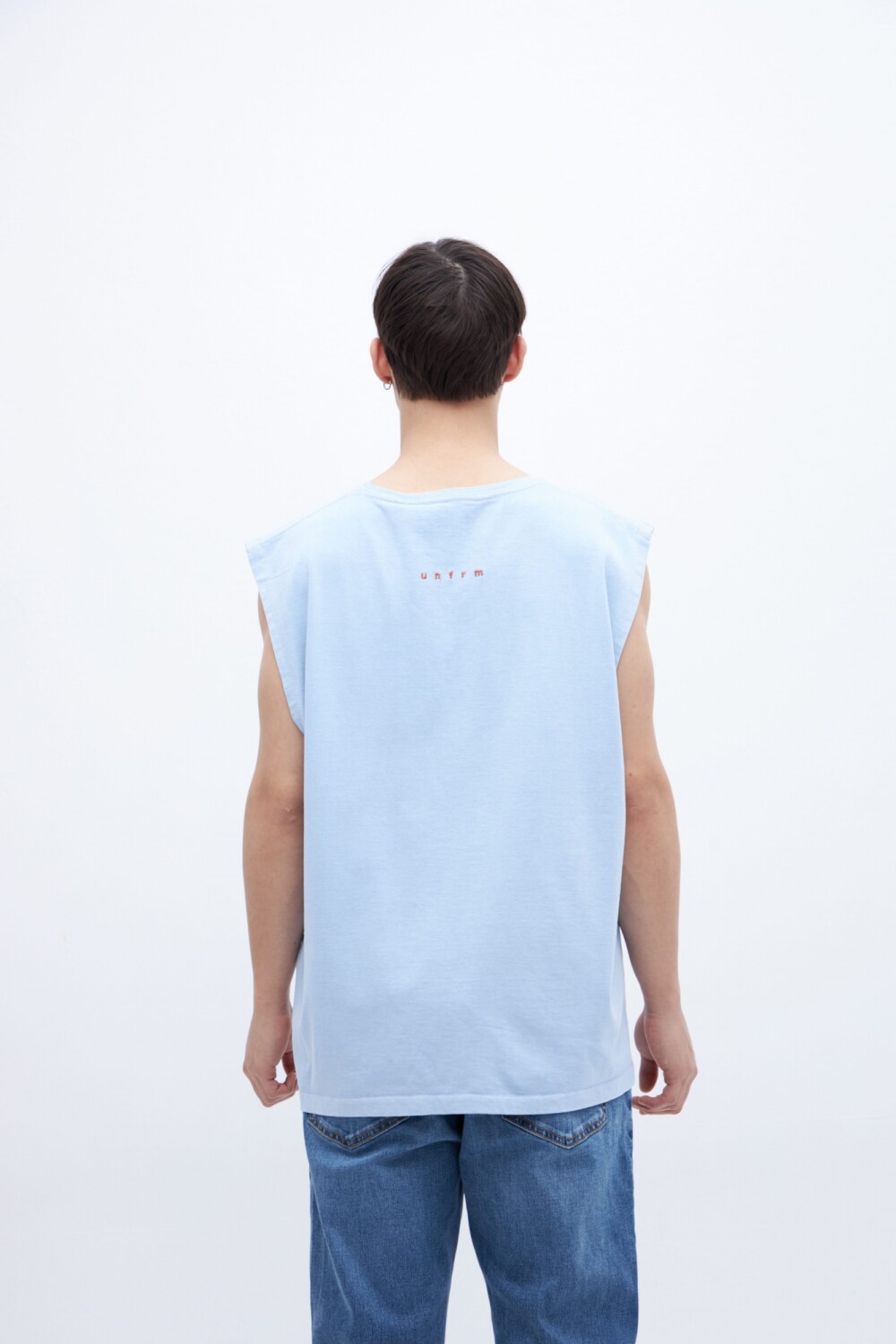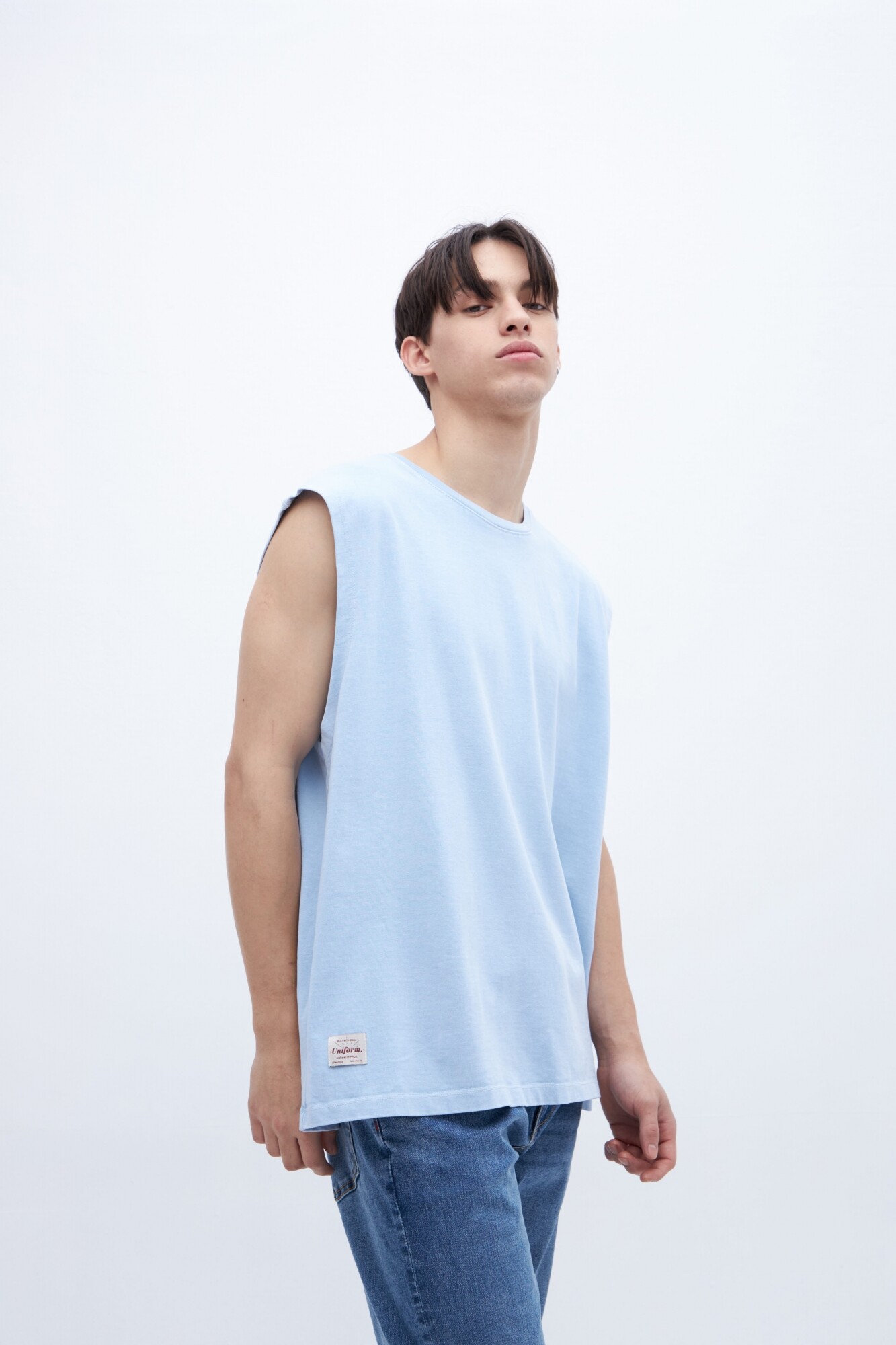$ 903Musculosa teñida en prenda con arte en espalda y grifa decorativa. Algodón lavado con textura extra suave. Tela jersey pesado. Calce boxy.