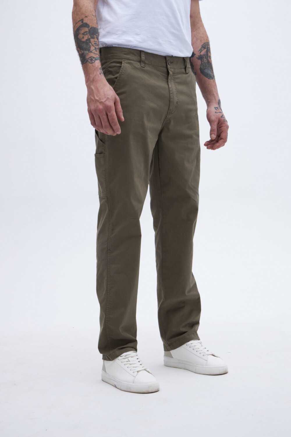 Pantalón carpintero con bolsillos laterales y detalle en trasera.