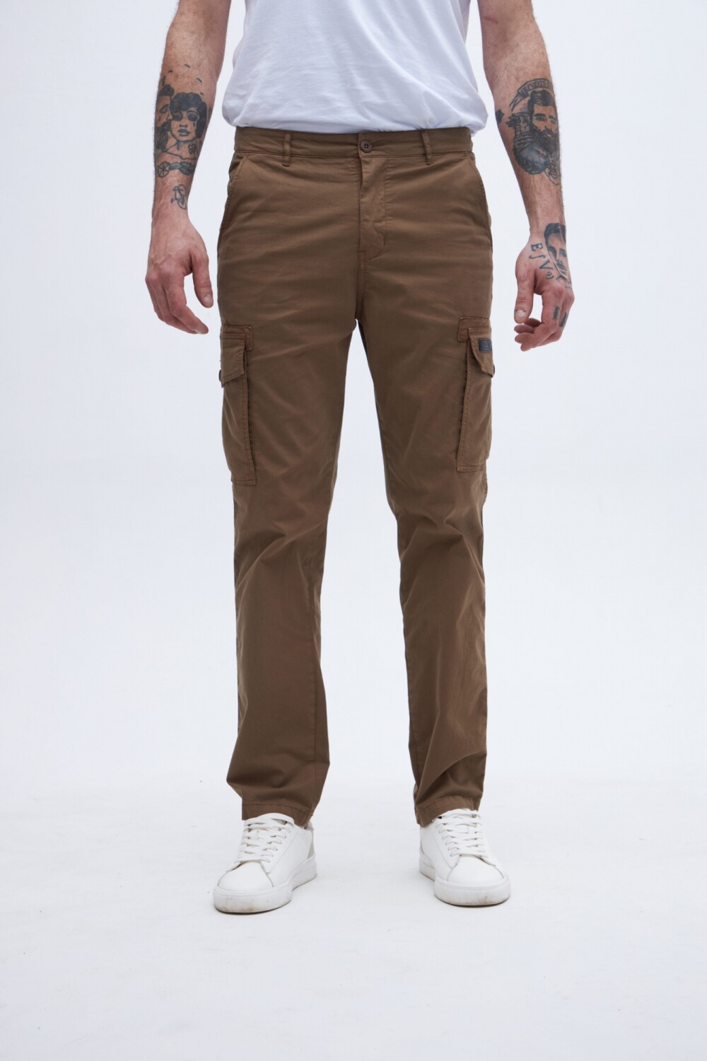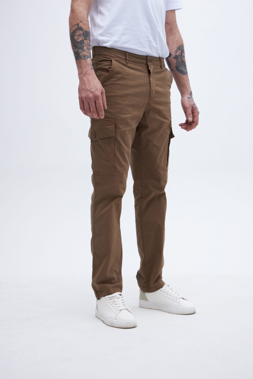 Pantalón cargo con bolsillos laterales y bolsillo cargo con solapa y botones.