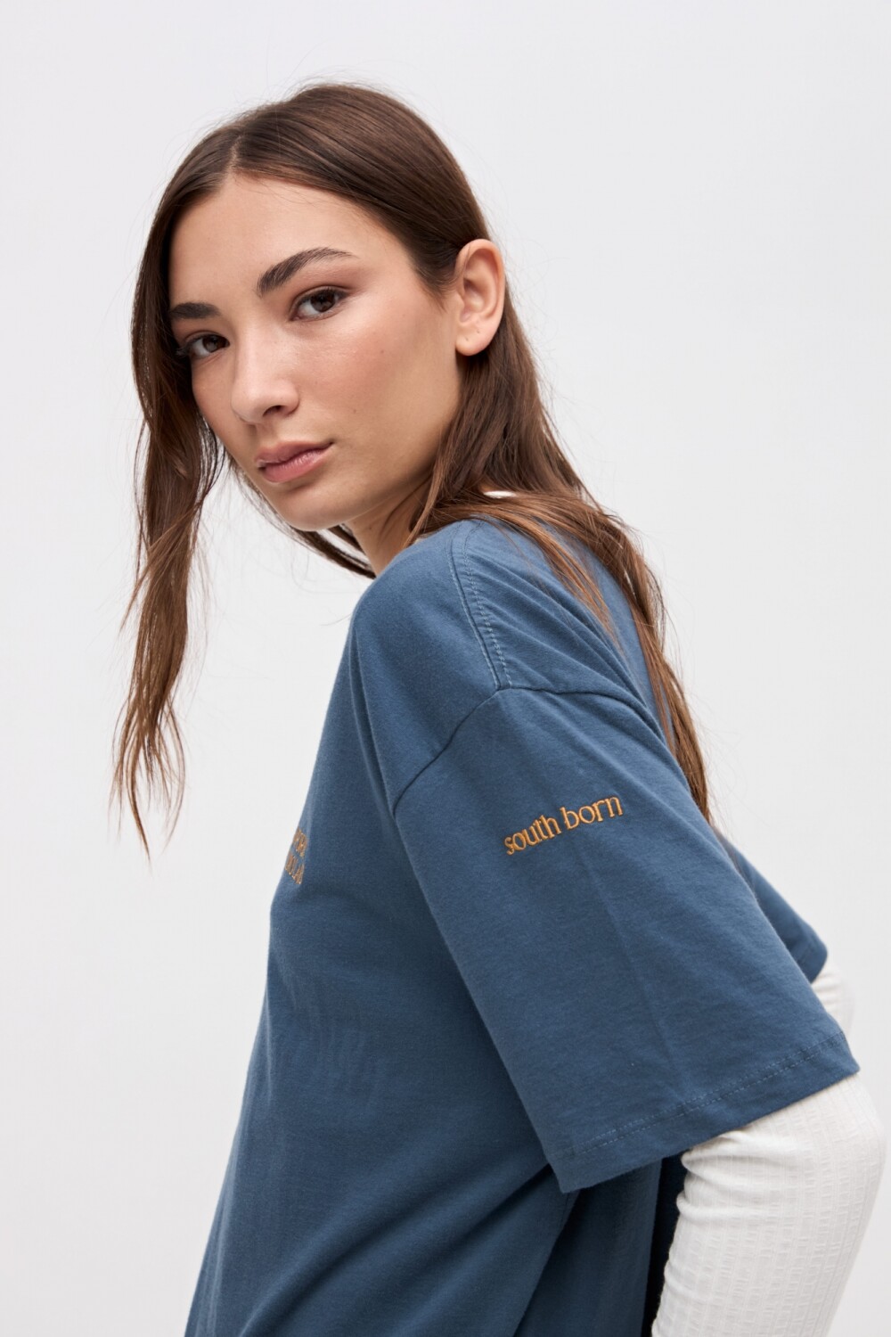 $ 927T-shirt manga corta con bordado de marca en pecho y manga. Tajos laterales. Algodón lavado con textura extra suave. Calce clásico.