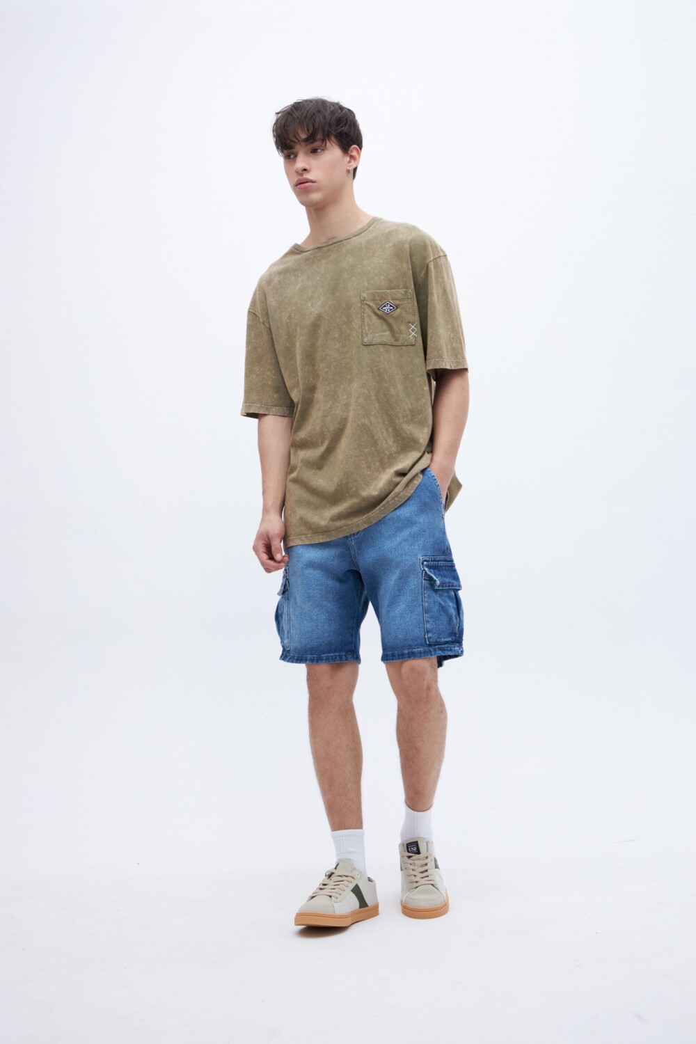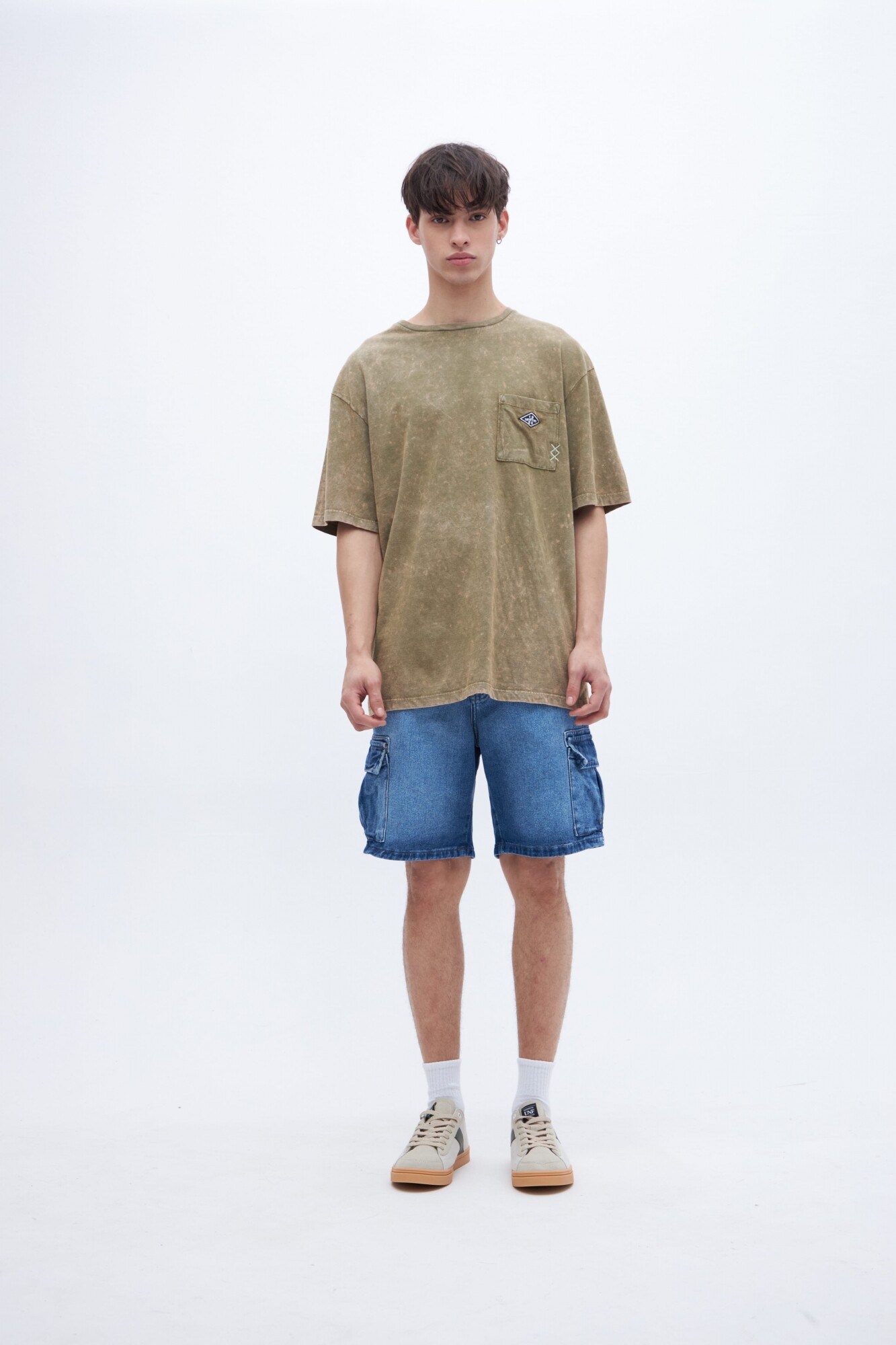 $ 1.043T-shirt efecto marmolado con bolsillo en pecho y parche decorativo. Arte en espalda baja. Algodón lavado con textura extra suave. Calce oversize.