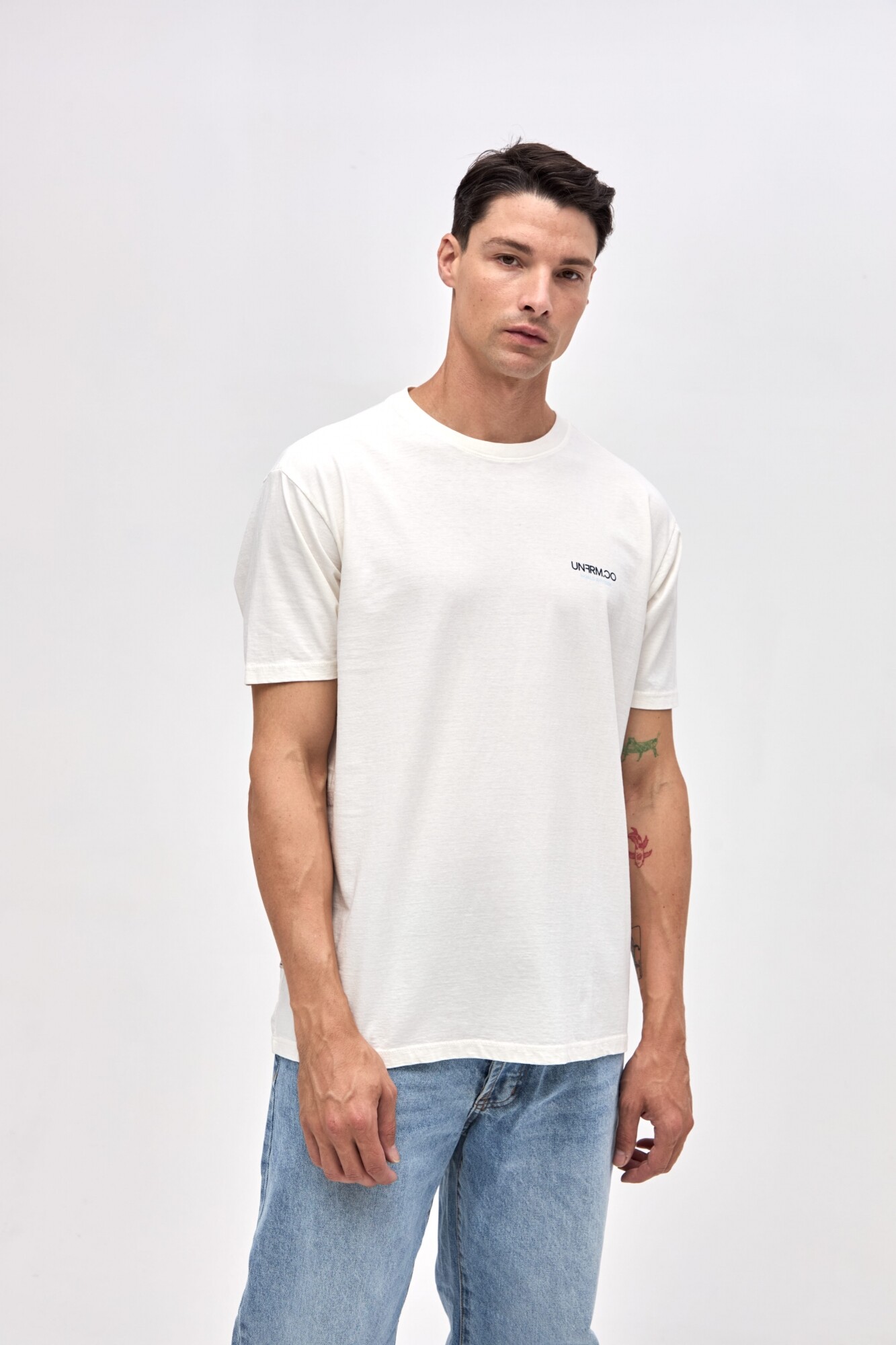 $ 1.012T-shirt manga corta con arte en pecho y espalda. Algodón lavado con textura extra suave. Calce relaxed.