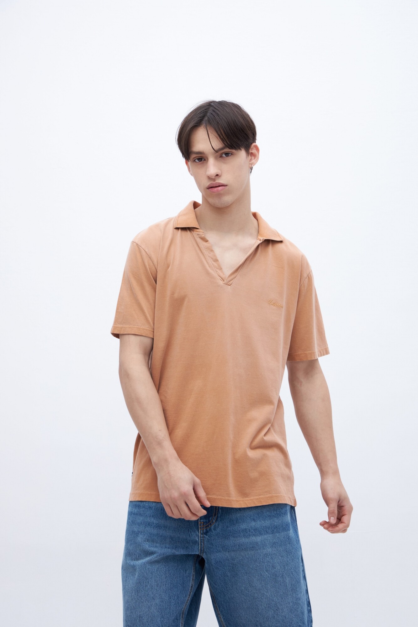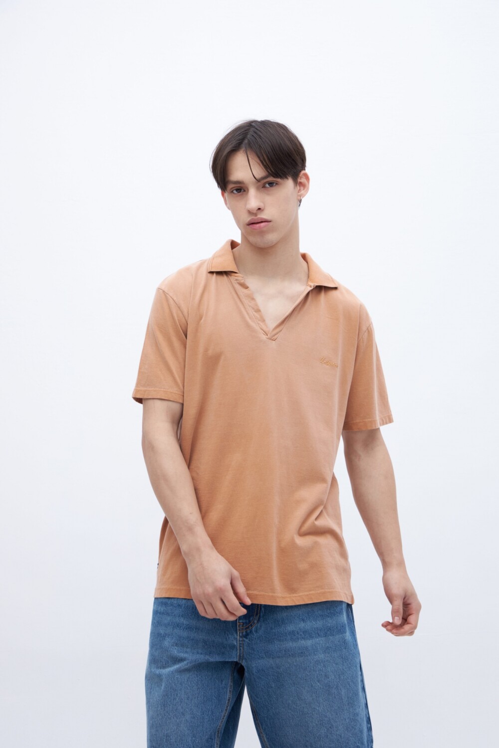$ 1.437Polo teñida en prenda con cuello diferenciado. Algodón lavado. Bordado en pecho.