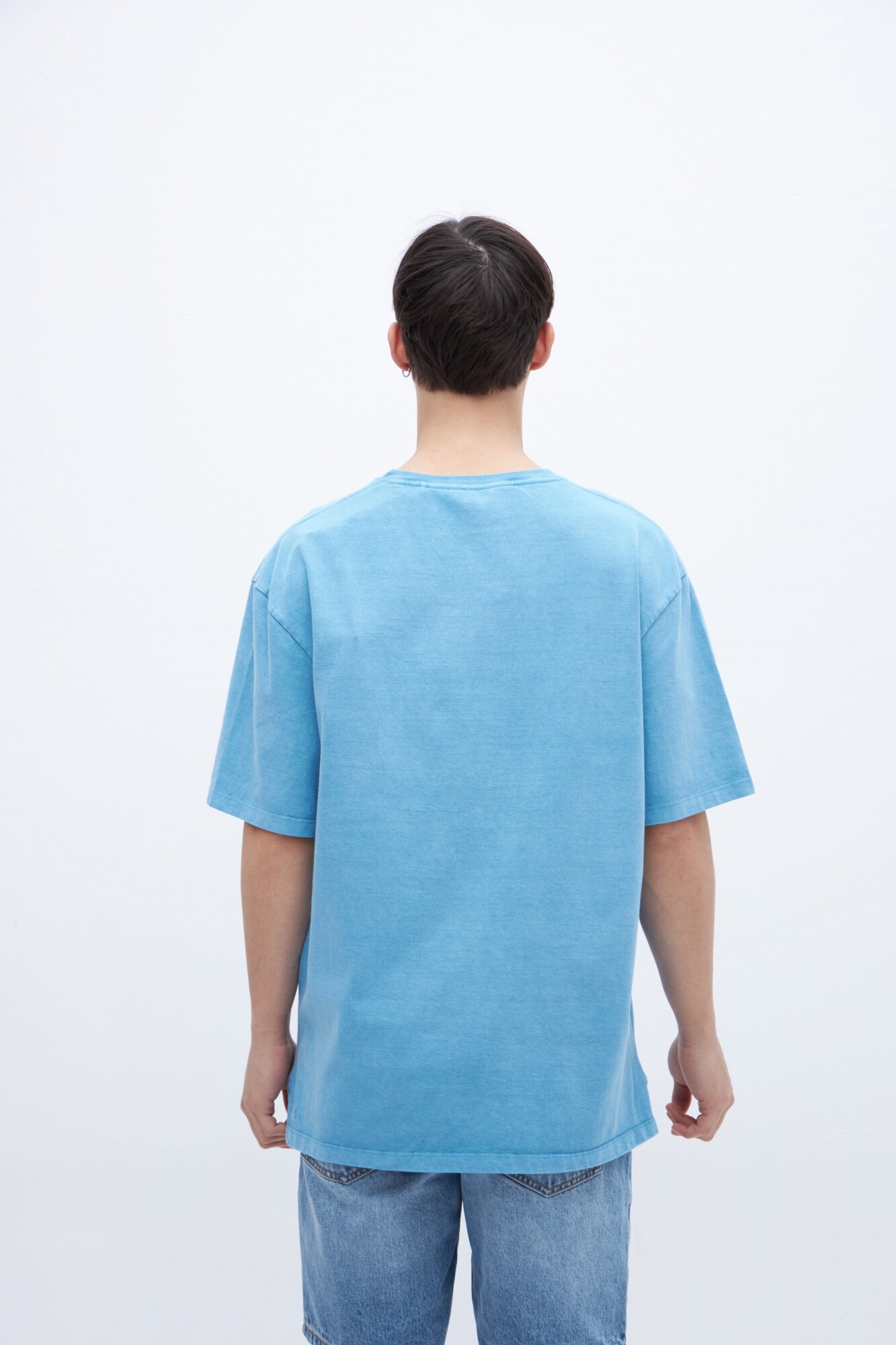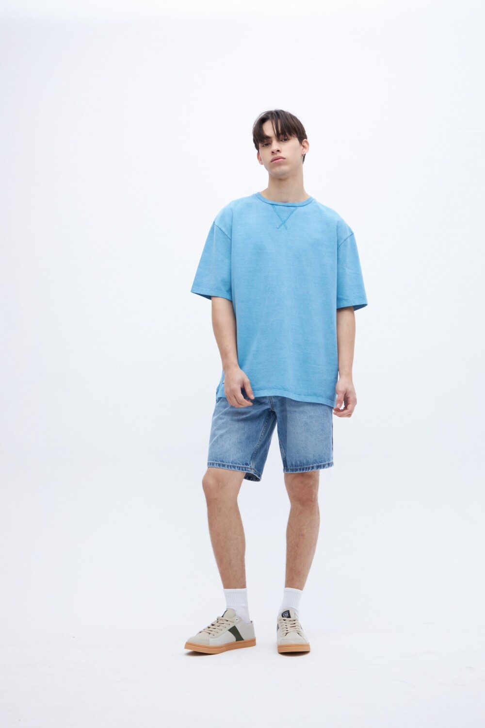 $ 1.267T-shirt teñida en prenda con detalle en cuello. Largo trasero más largo que delantero. Tajos laterales. Algodón lavado con textura extra suave. Tela jersey pesado. Calce oversize.