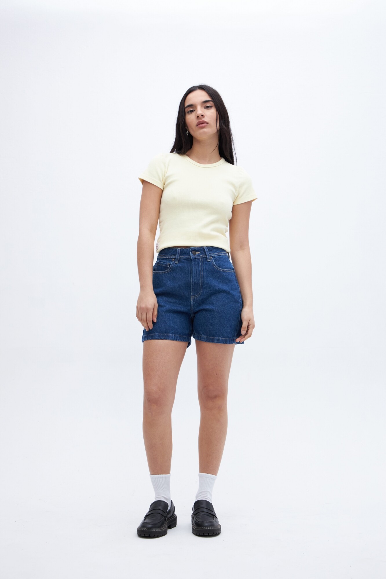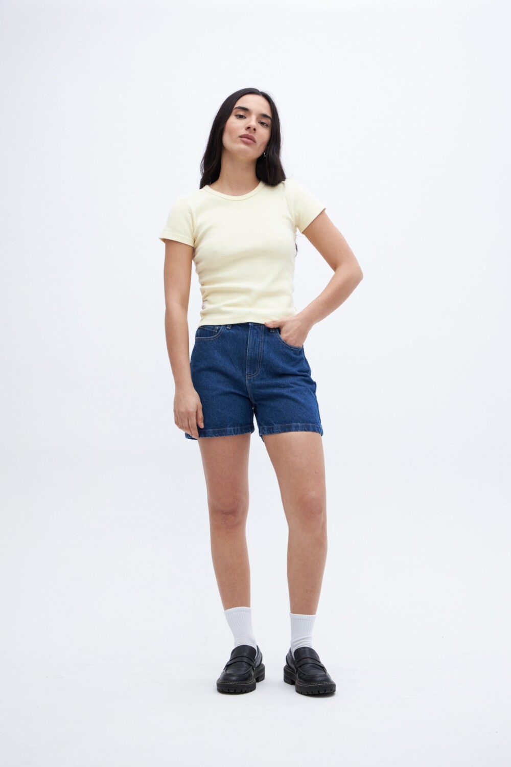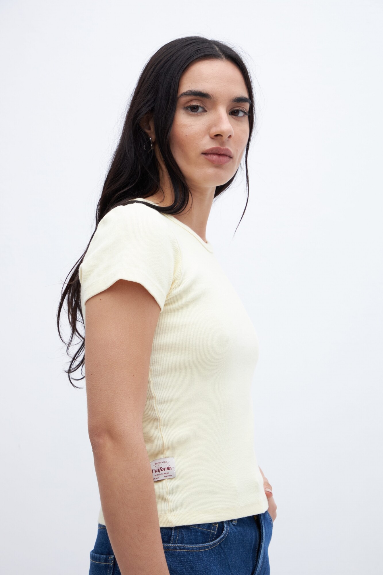 $ 763T-shirt tipo top, teñida en prenda. En tela rib. Algodón lavado con textura extra suave. Calce ajustado.