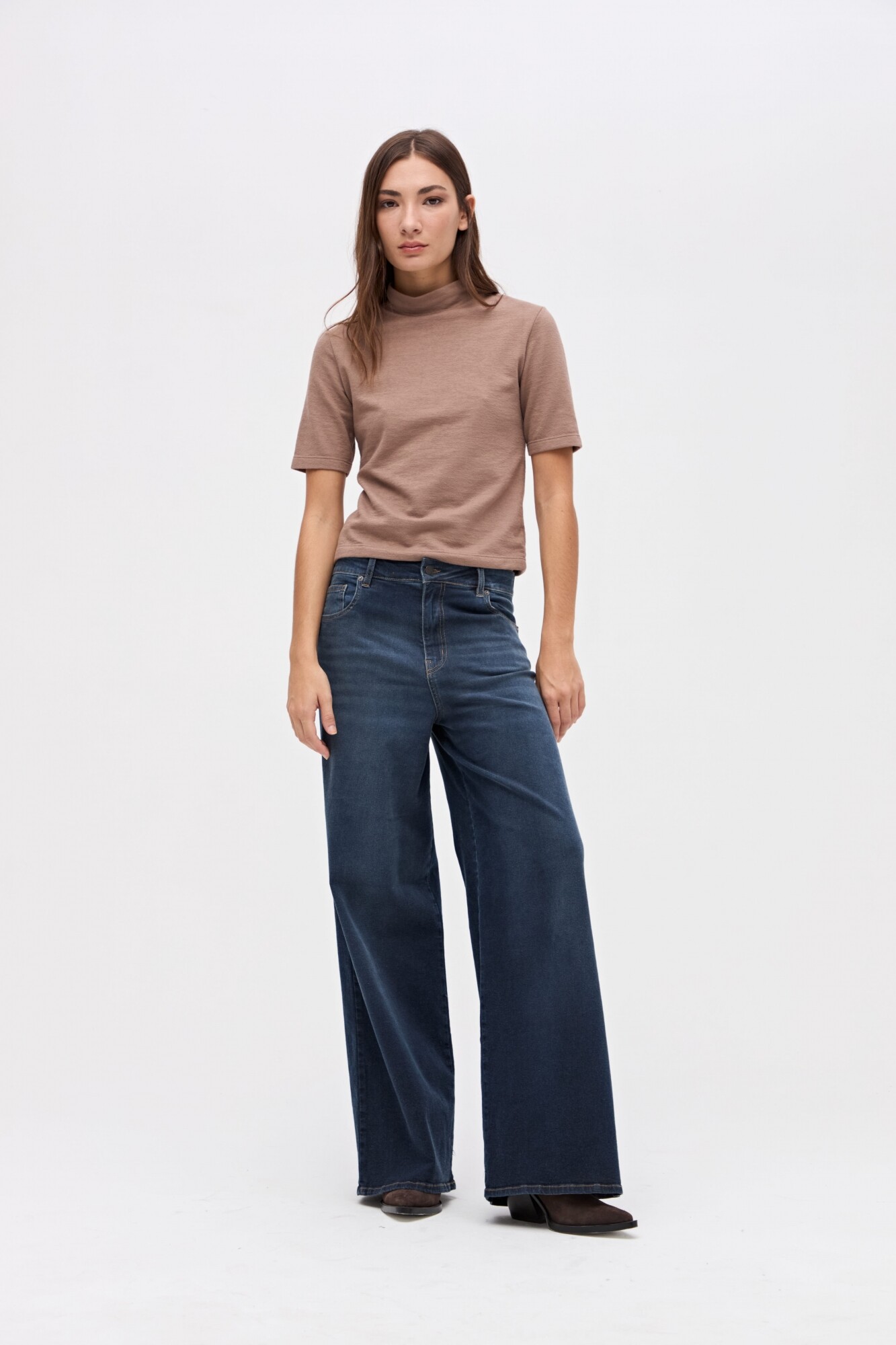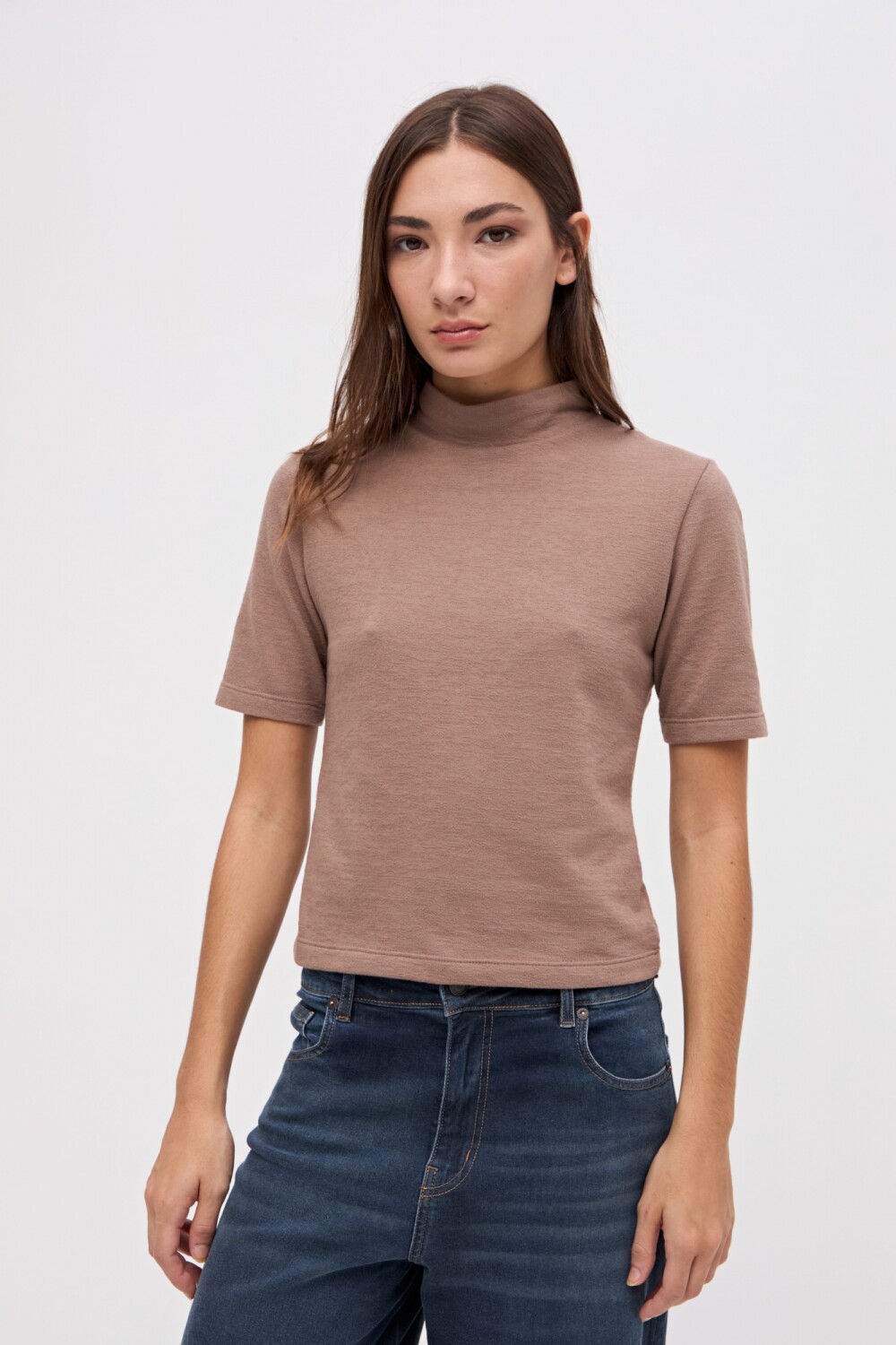$ 1.437T-shirt manga corta con cuello polera en tela diferenciada. Mangas 3/4. Calce ajustado.