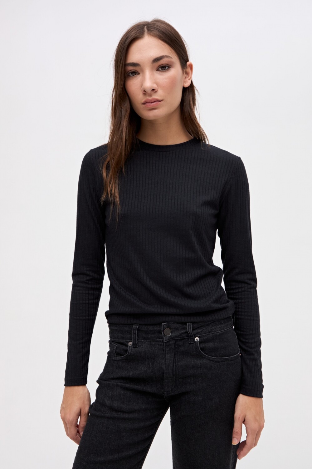 $ 1.352T-shirt manga larga con tela tipo rib diferenciado. Calce ajustado.