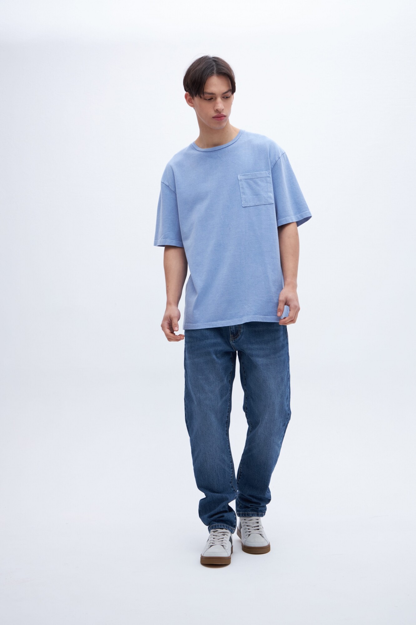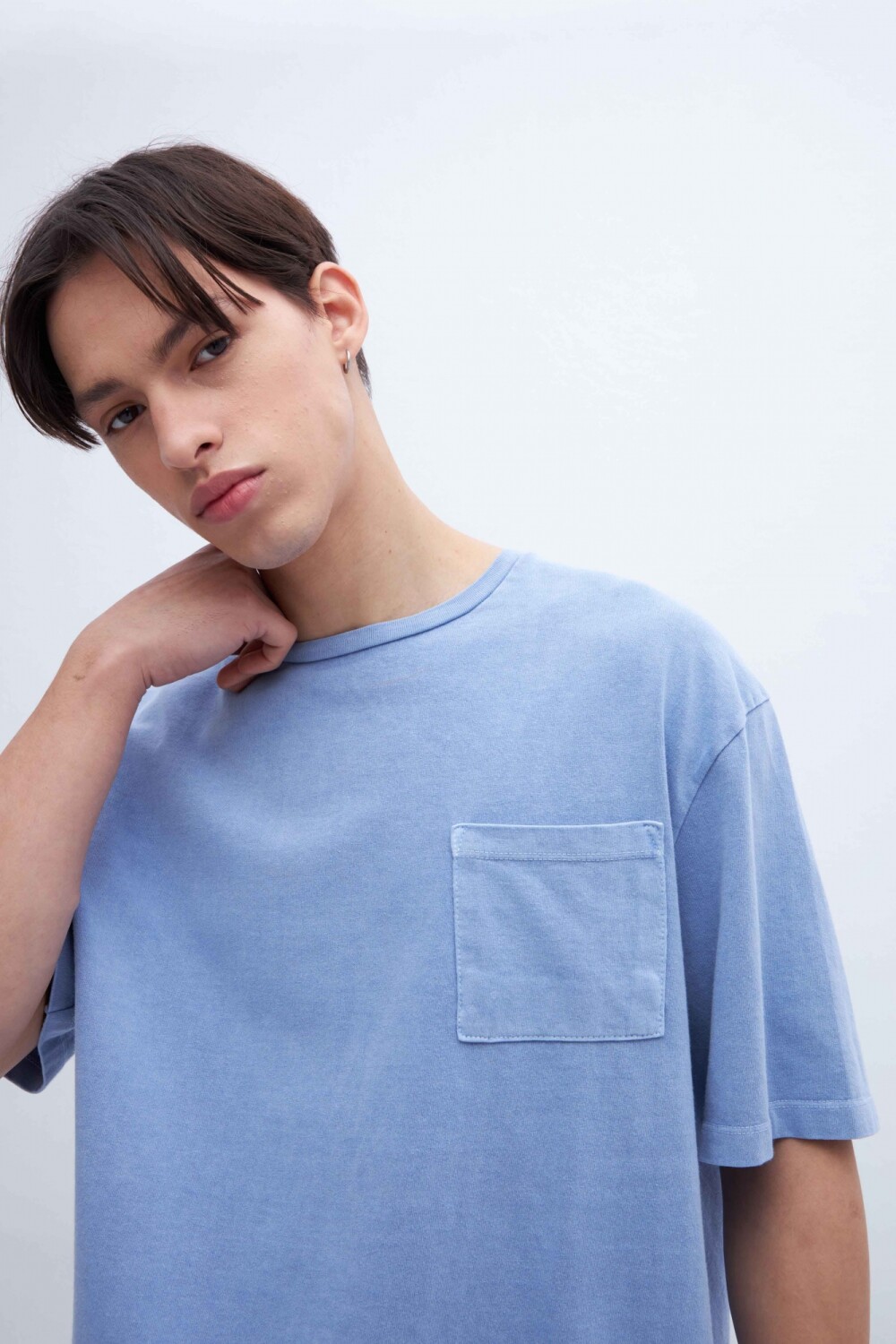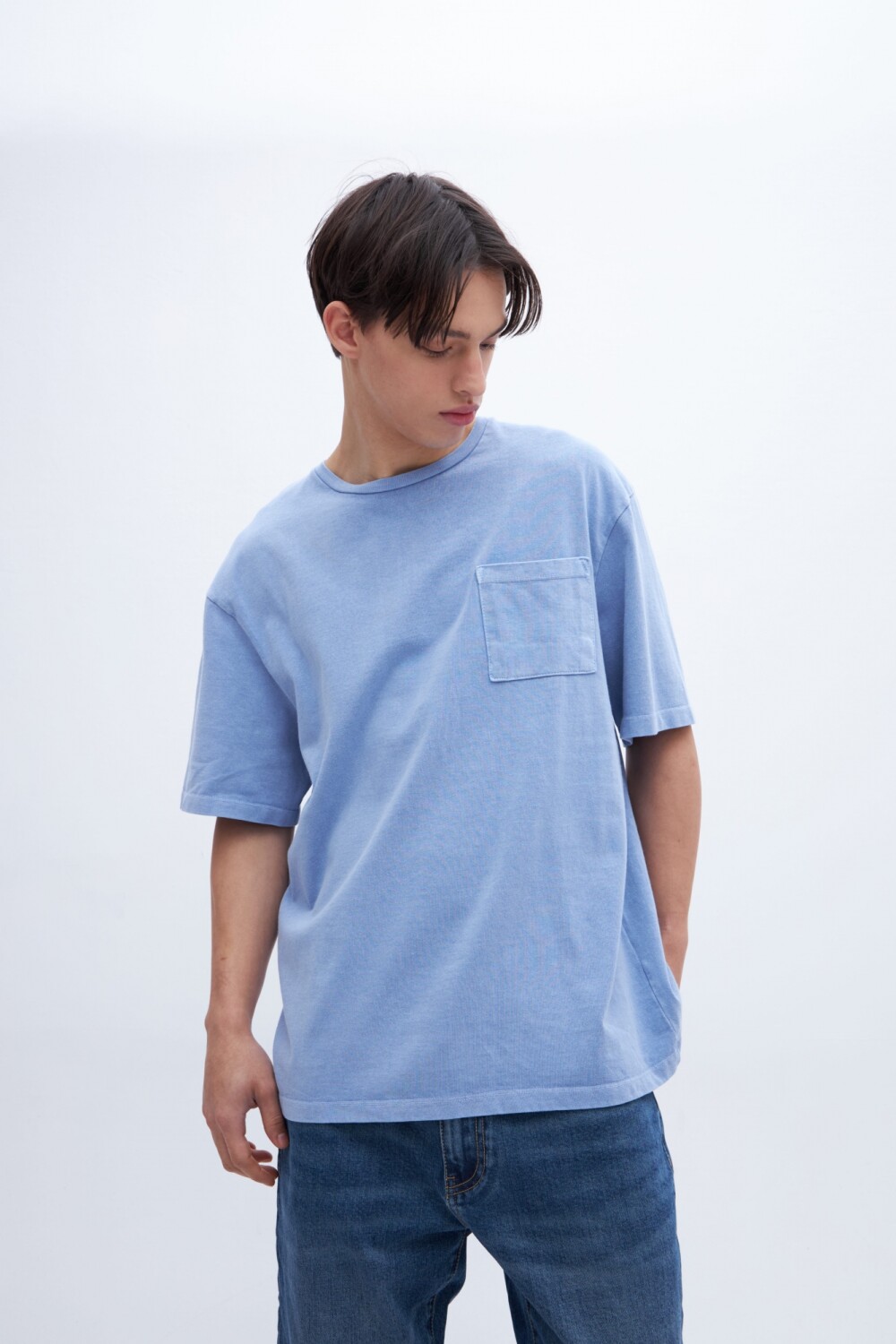 $ 1.267T-shirt teñida en prenda con bolsillo en pecho y arte de texto en espalda. Algodón lavado con textura extra suave. Tela jersey pesado. Calce oversize.