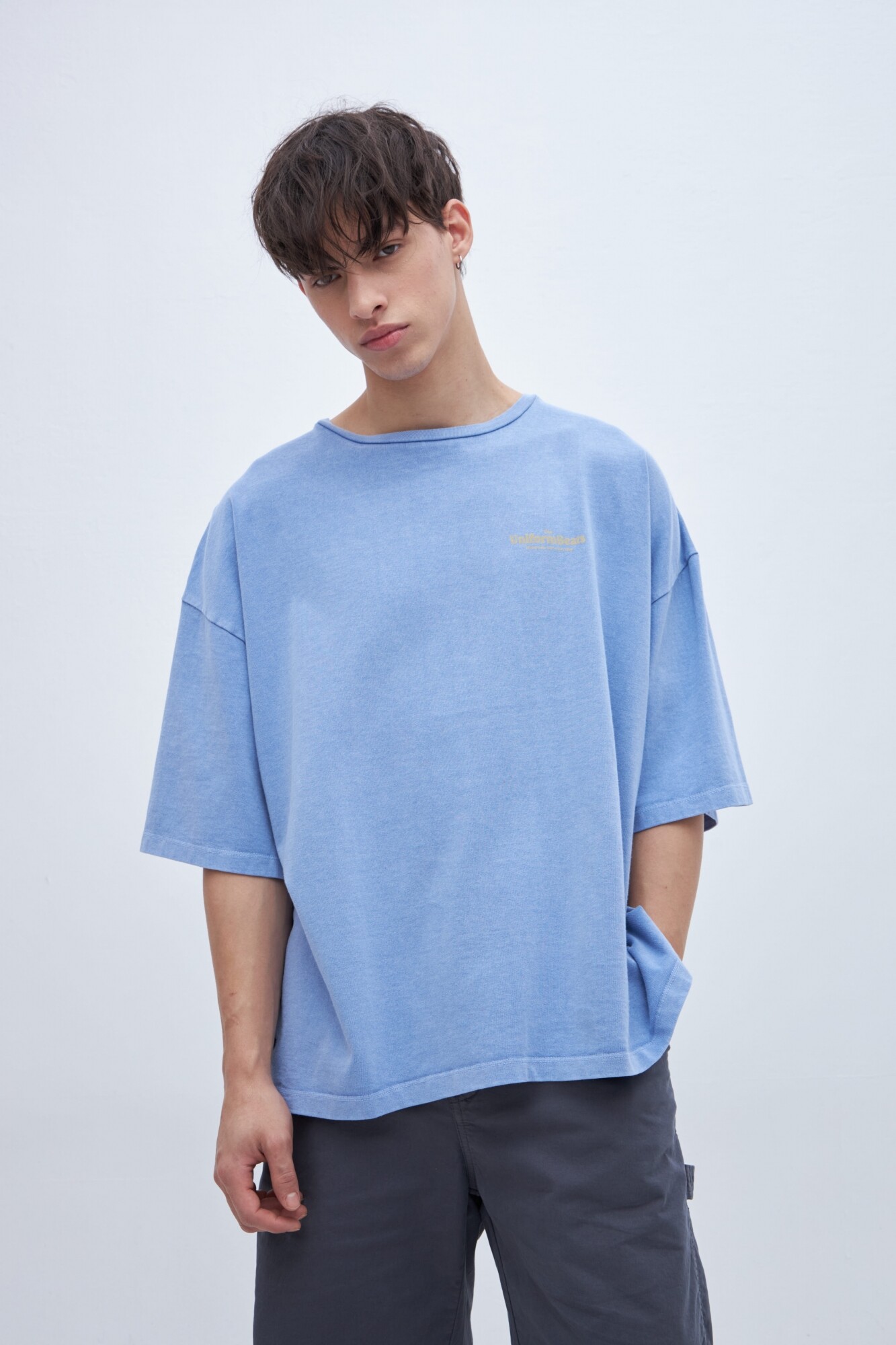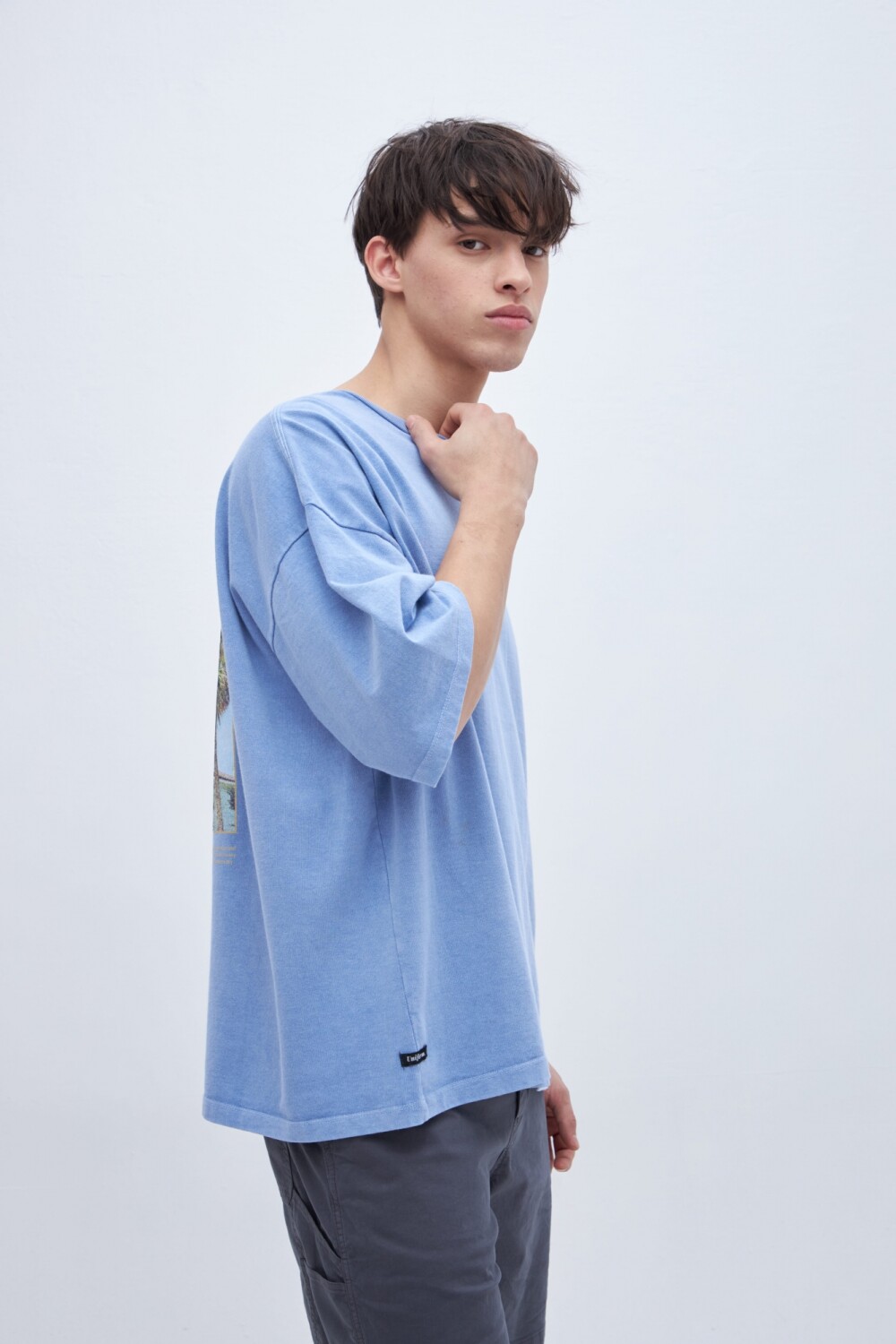 $ 1.267T-shirt teñida en prenda con arte en pecho y diseño fotográfico en espalda. Algodón lavado con textura extra suave. Tela jersey pesado. Calce boxy.